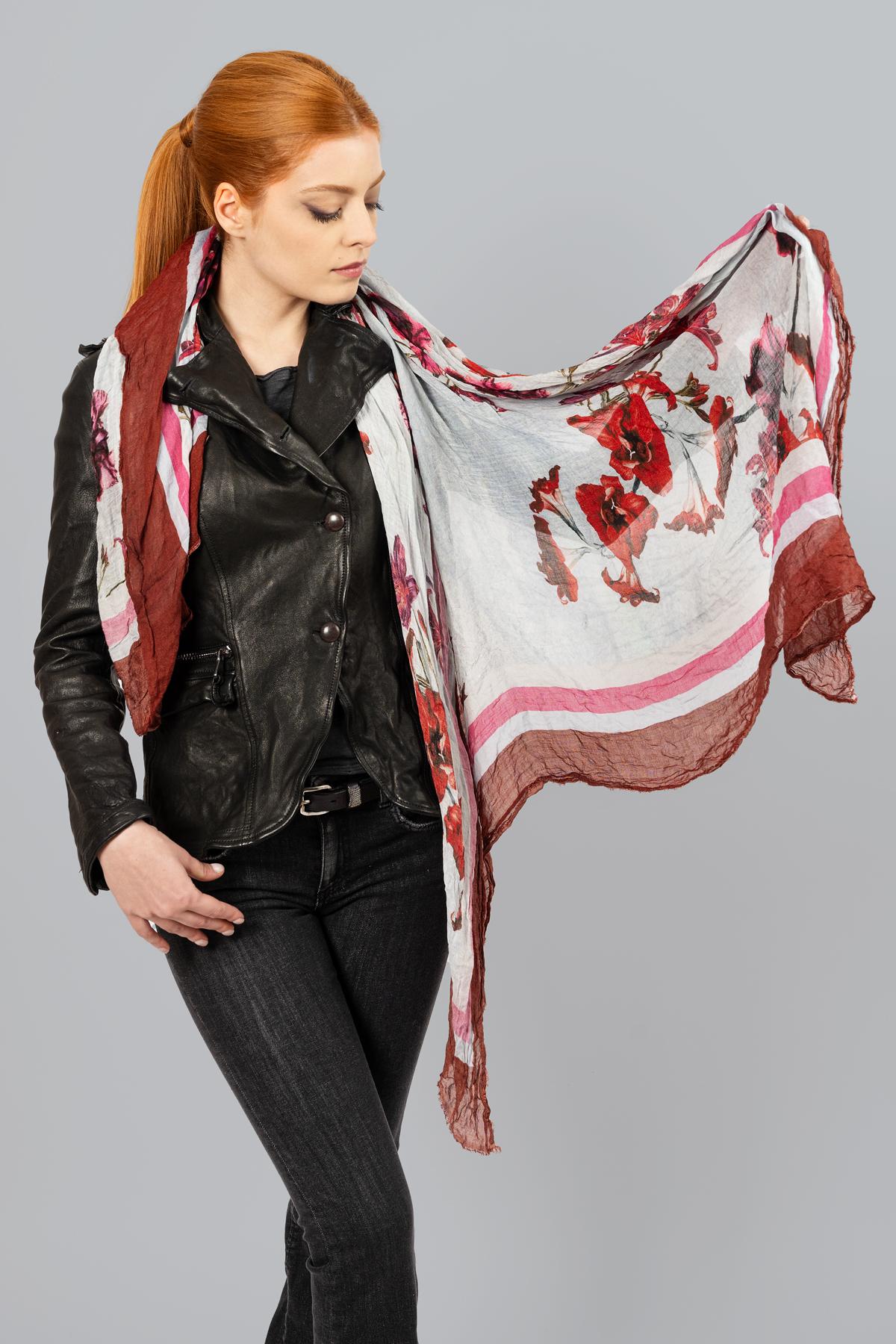 Cashmere blend scarf with floral print. Raw cut hem.90% Modal; 10% Cashmere ...