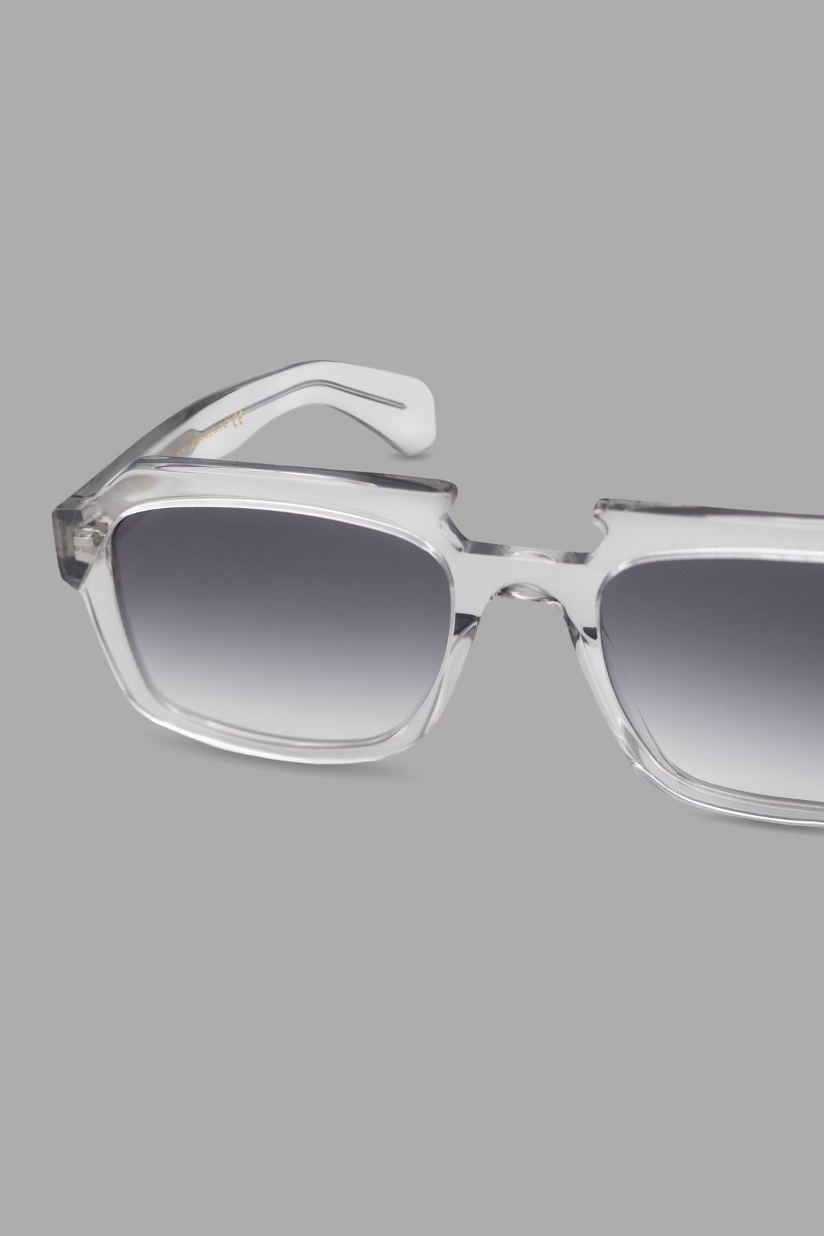 Handmade sunglasses made of high-quality cellulose acetate. Slightly rounded rectangular shaped frame, with a hollowed-out bridge. Lens with maximum UV protection.