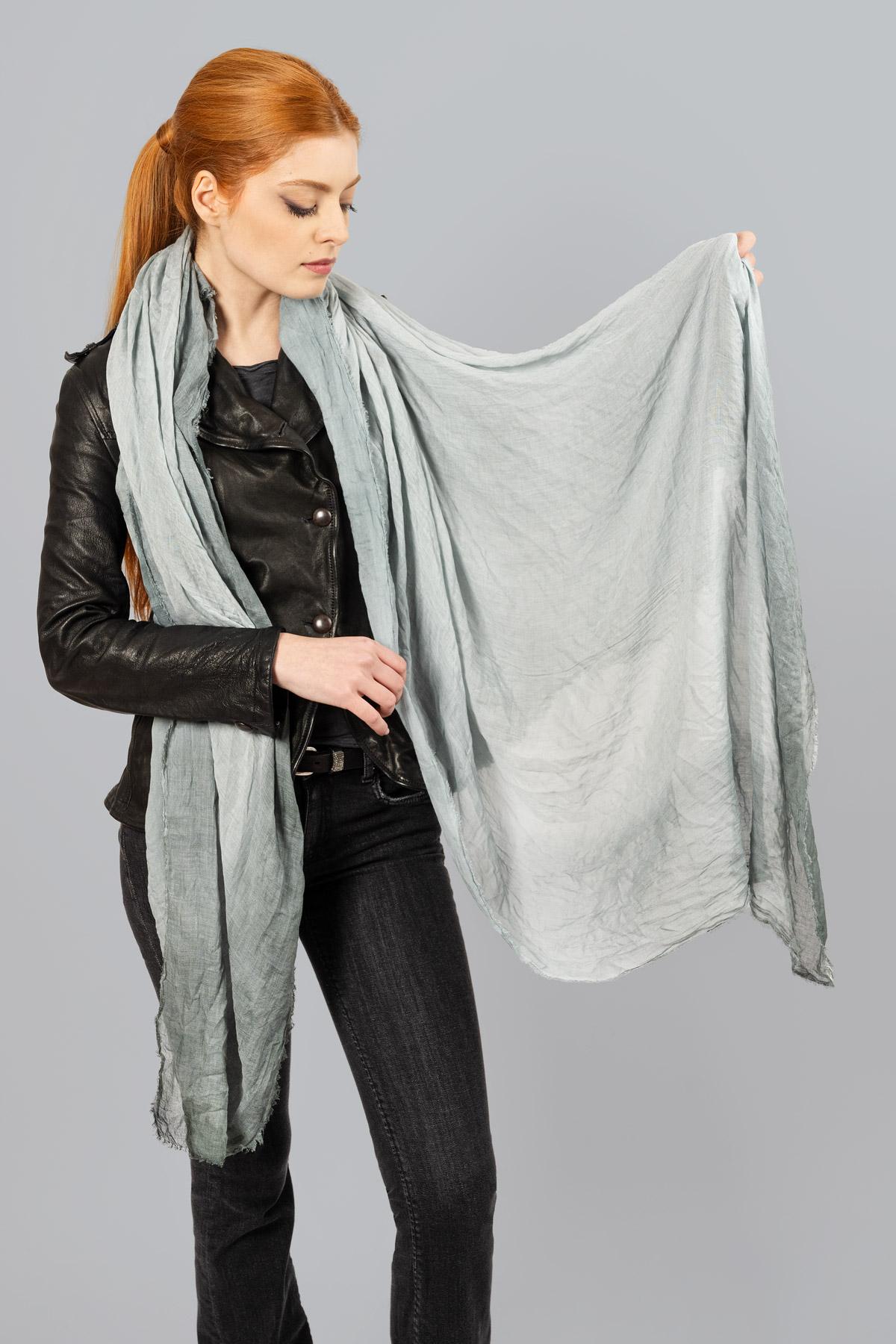 Cashmere-blend scarf in powder-coloured shades. Raw cut hem.