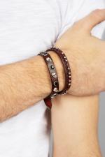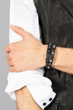 Double bracelet in padded leather. Embellished with skull-shaped studs and stones. Adjustable clasp.100% Genuine Leather ...
