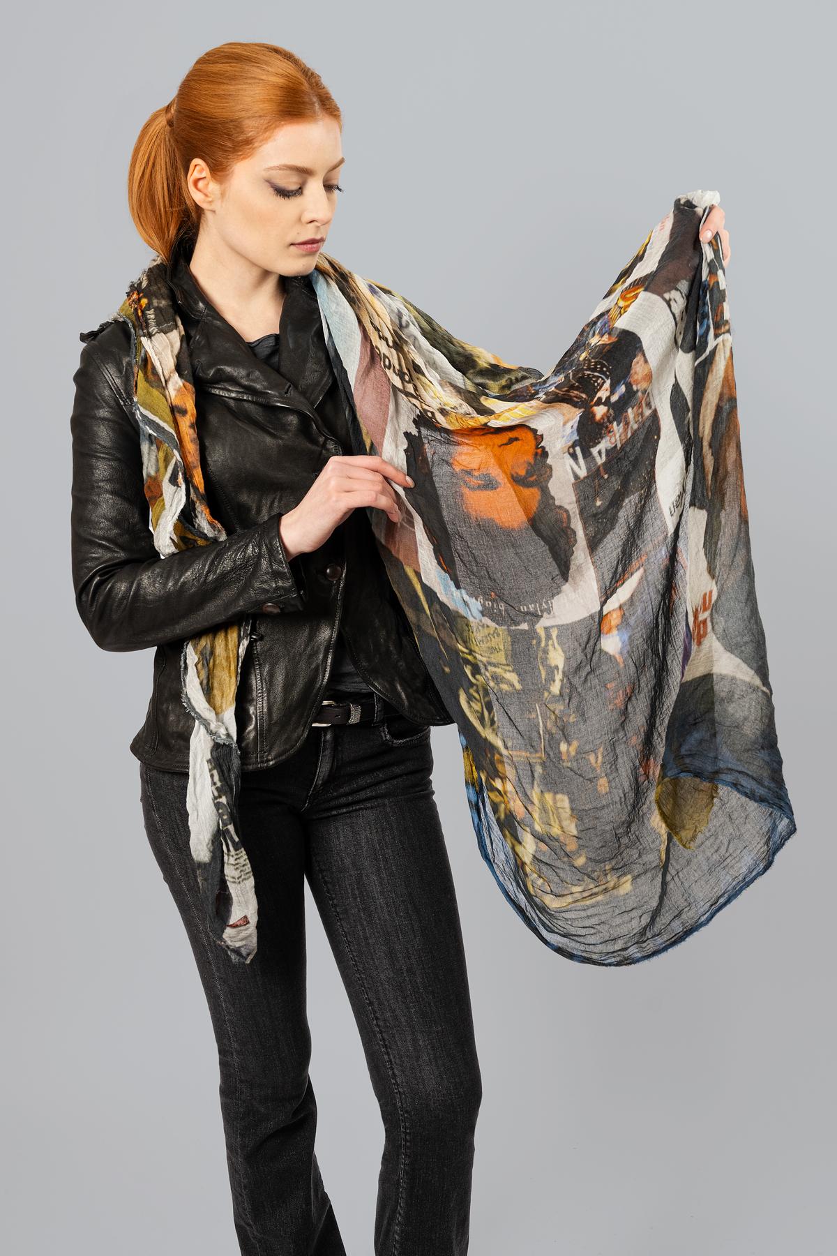 Cashmere blend scarf with Bob Dylan print. Raw cut hem.90% Modal; 10% Cashmere ...