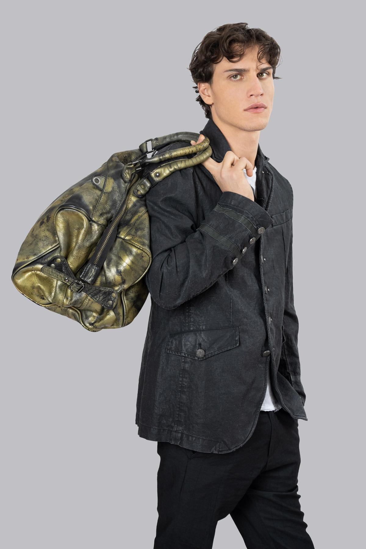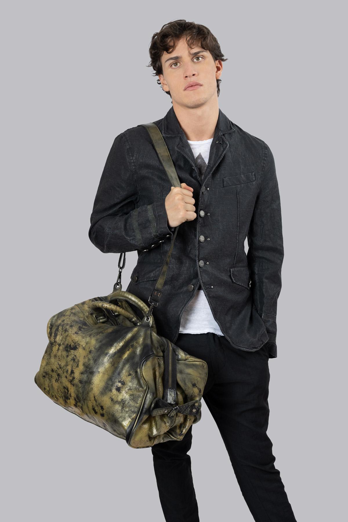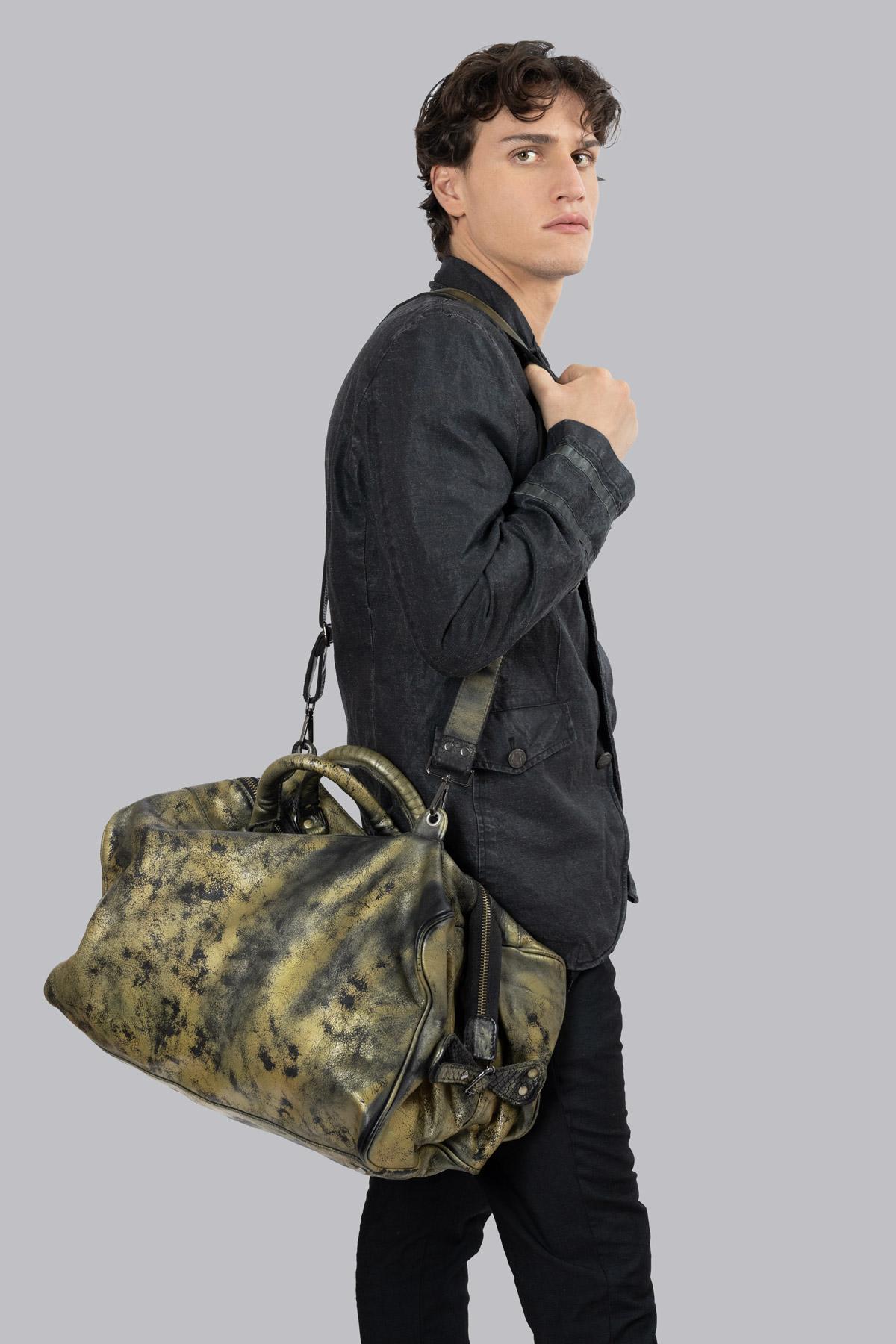 Borsone da viaggio in pelle. Fibbie con cinghie laterali. Chiusura con zip. Tracolla rimovibile con moschettone.COMPOSIZIONE PRODOTTO: Vera Pelle.MISURE: Lunghezza: ...