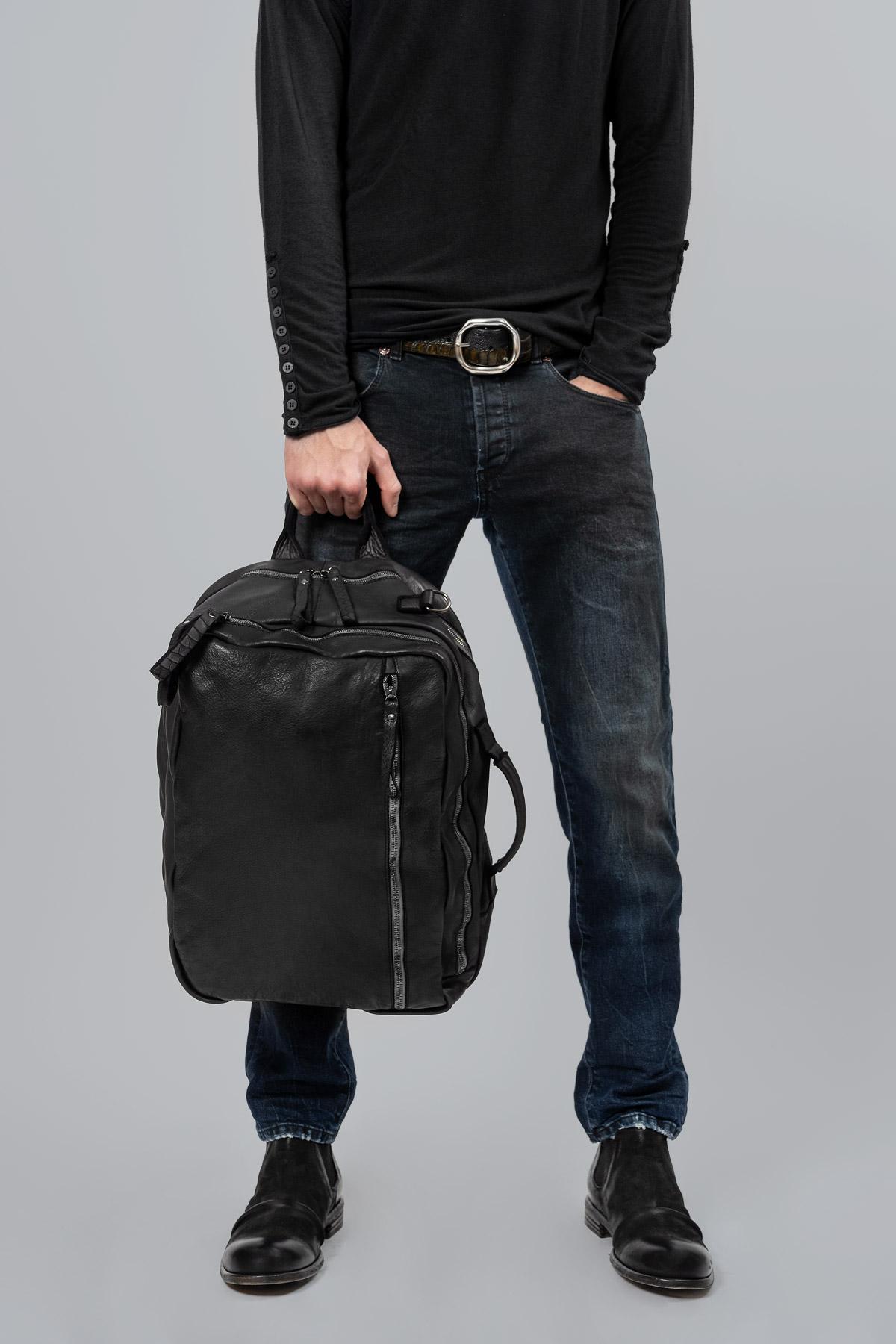 Zaino in pelle con chiusura lampo. Inserendo nella tasca posteriore le cinghie dello zaino, la borsa può essere indossata anche a tracolla o a mano.