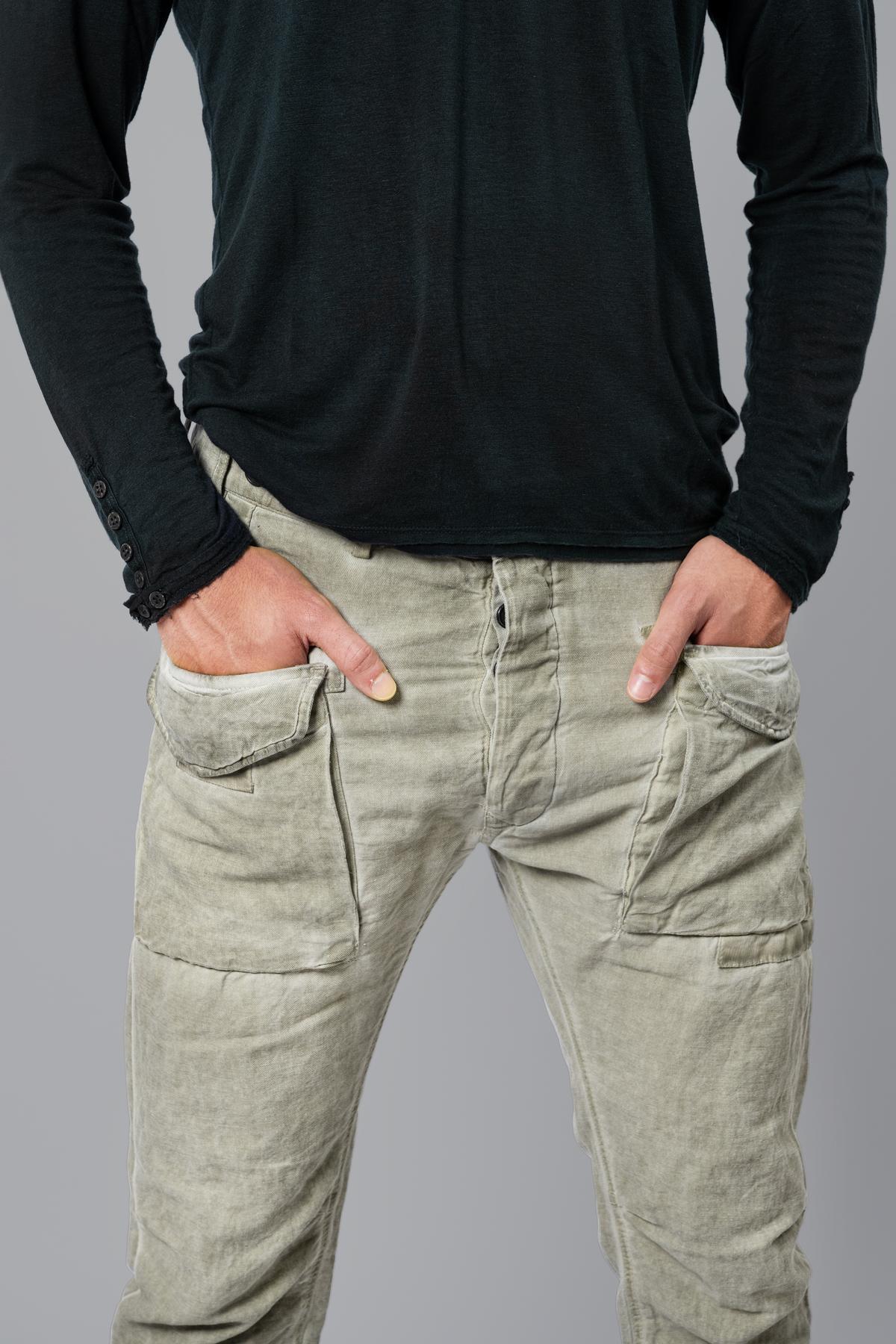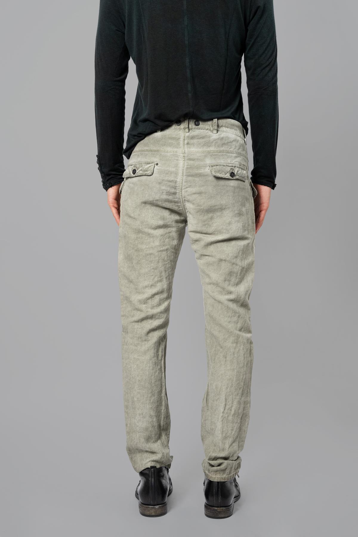 Pantaloni cargo in misto cotone-lino. Chiusura centrale con gancio e dettaglio bottoni in vita. Due tasche a toppa sul davanti e due tasche sul retro.