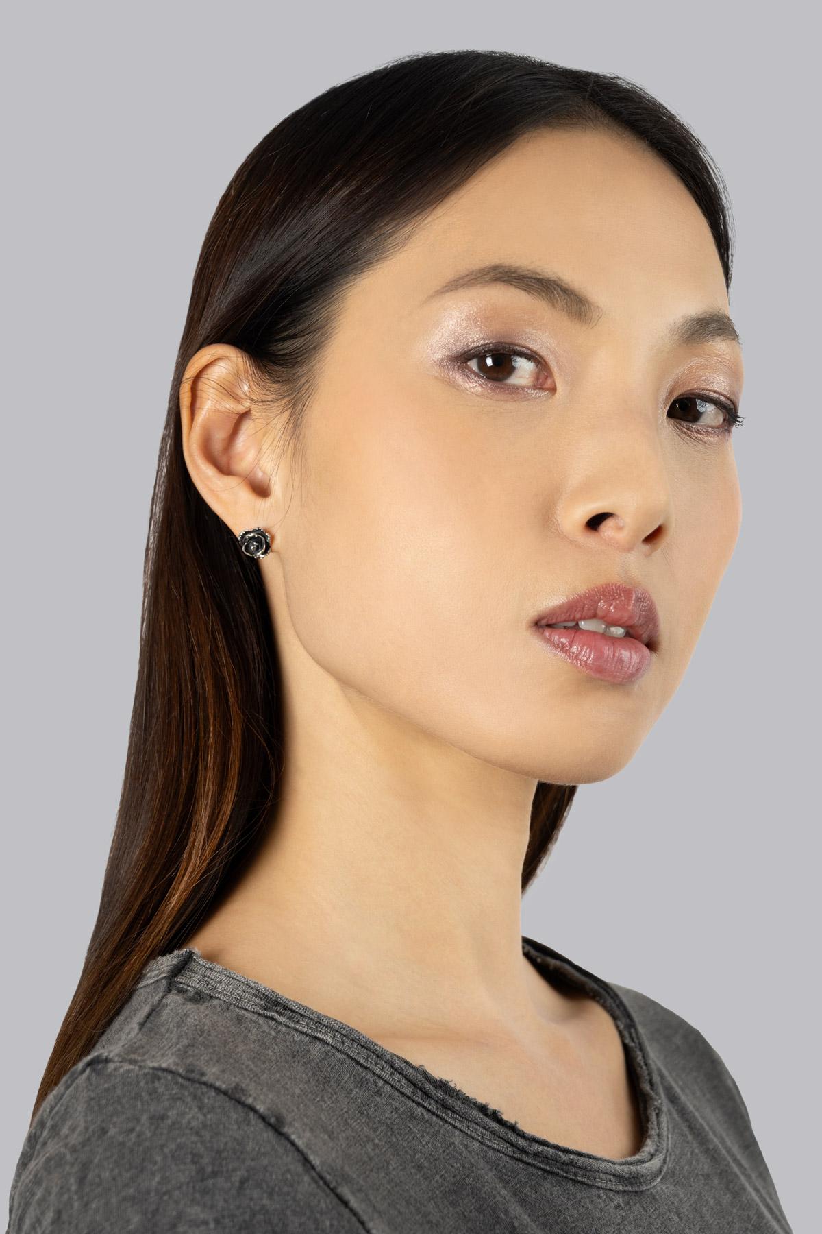 Silver 925 earrings with rose-shaped front.