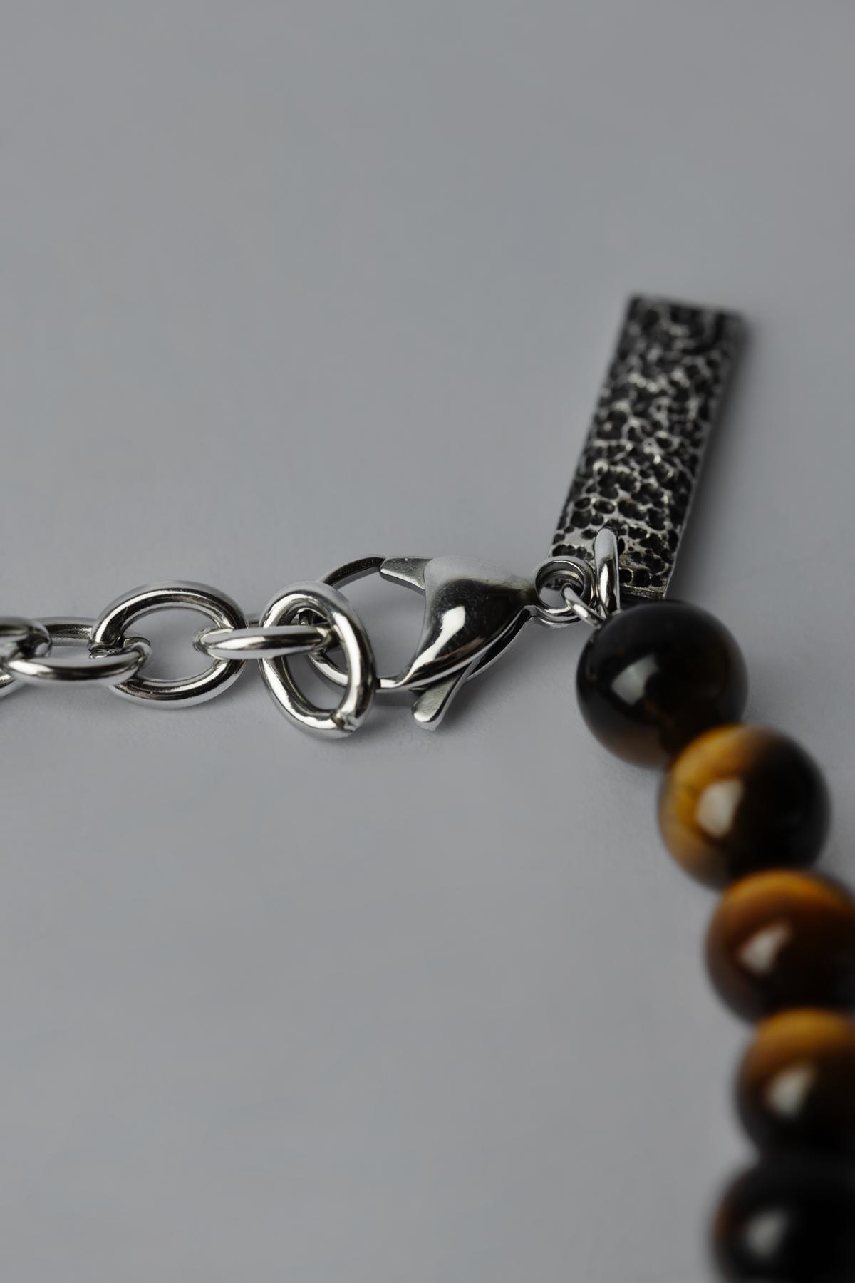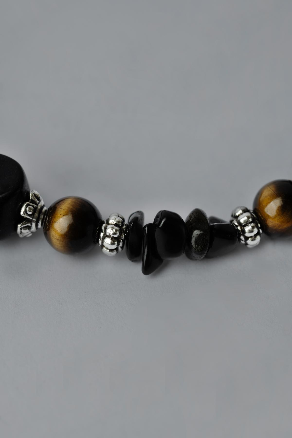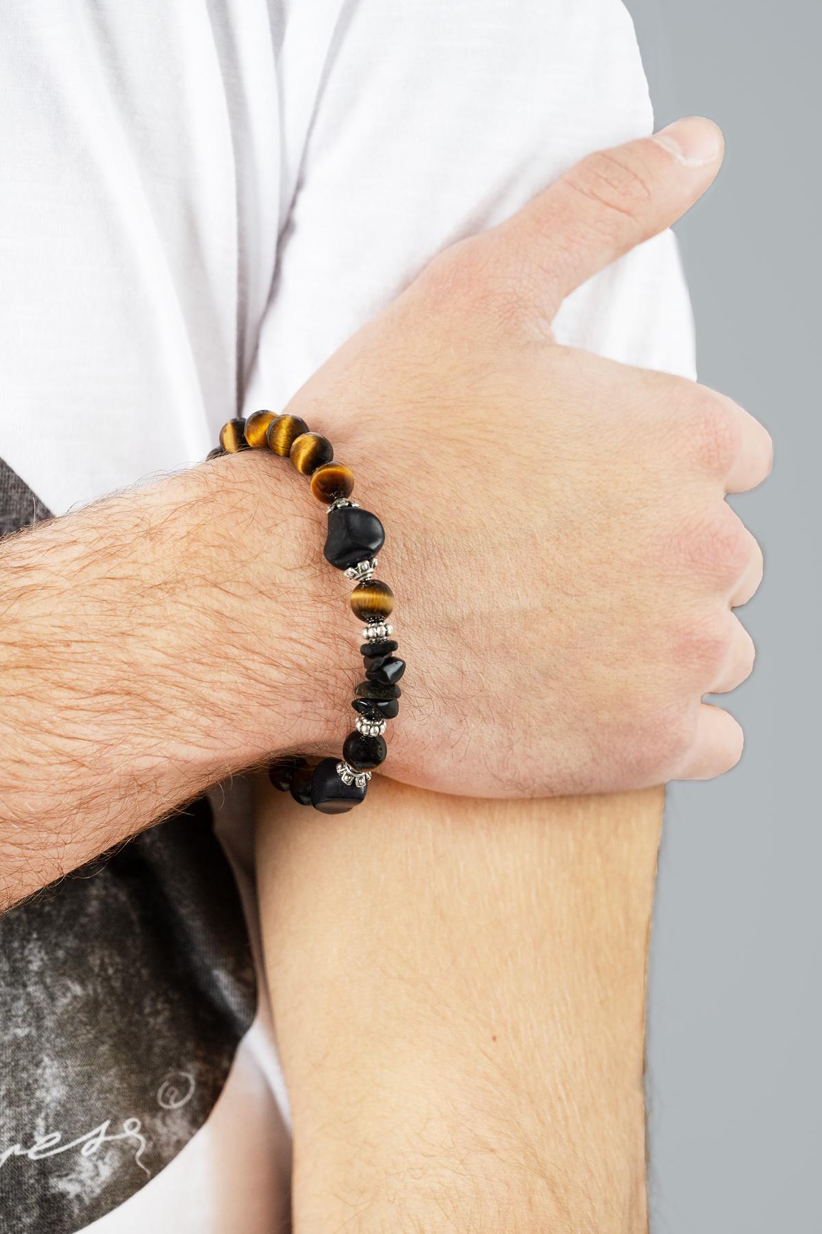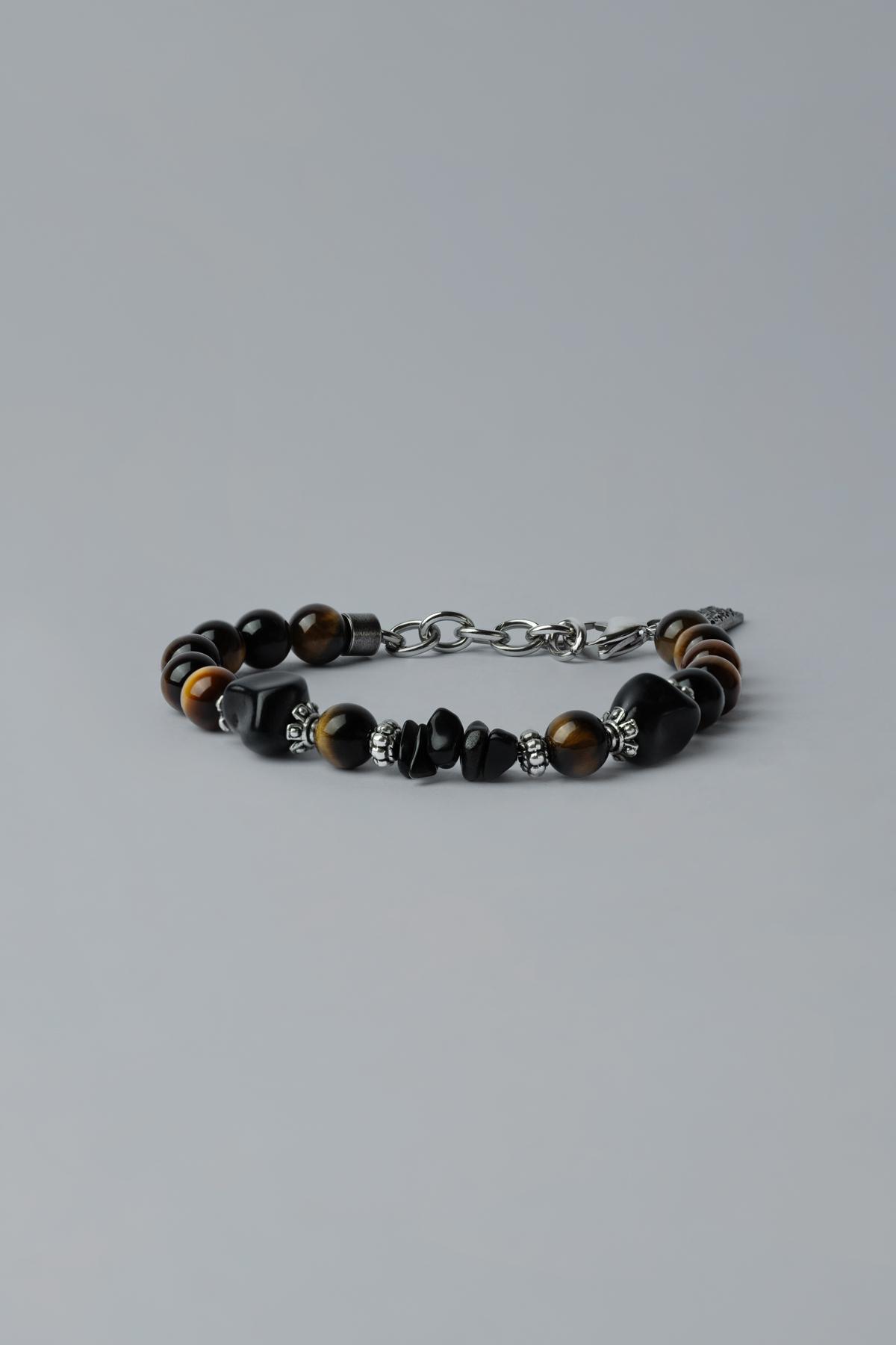 Bracelet with black stones and brown shades. Adjustable closure with lobster clasp.