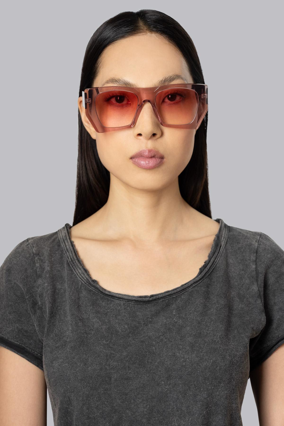 Handmade sunglasses made of high-quality cellulose acetate. Oversized frame with geometric shape. Gradient lens with maximum UV protection.