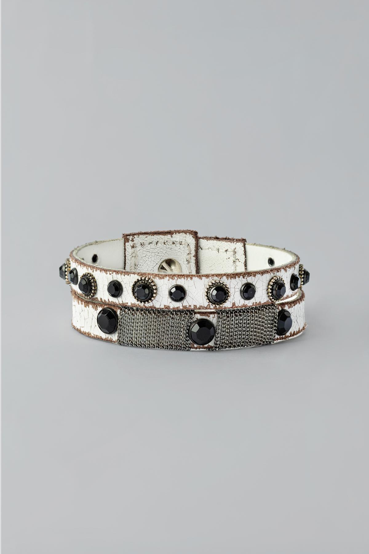 Double bracelet in ruined effect leather. Application of onyx stone and metal wires. Button closure with through holeGenuine Leather ...