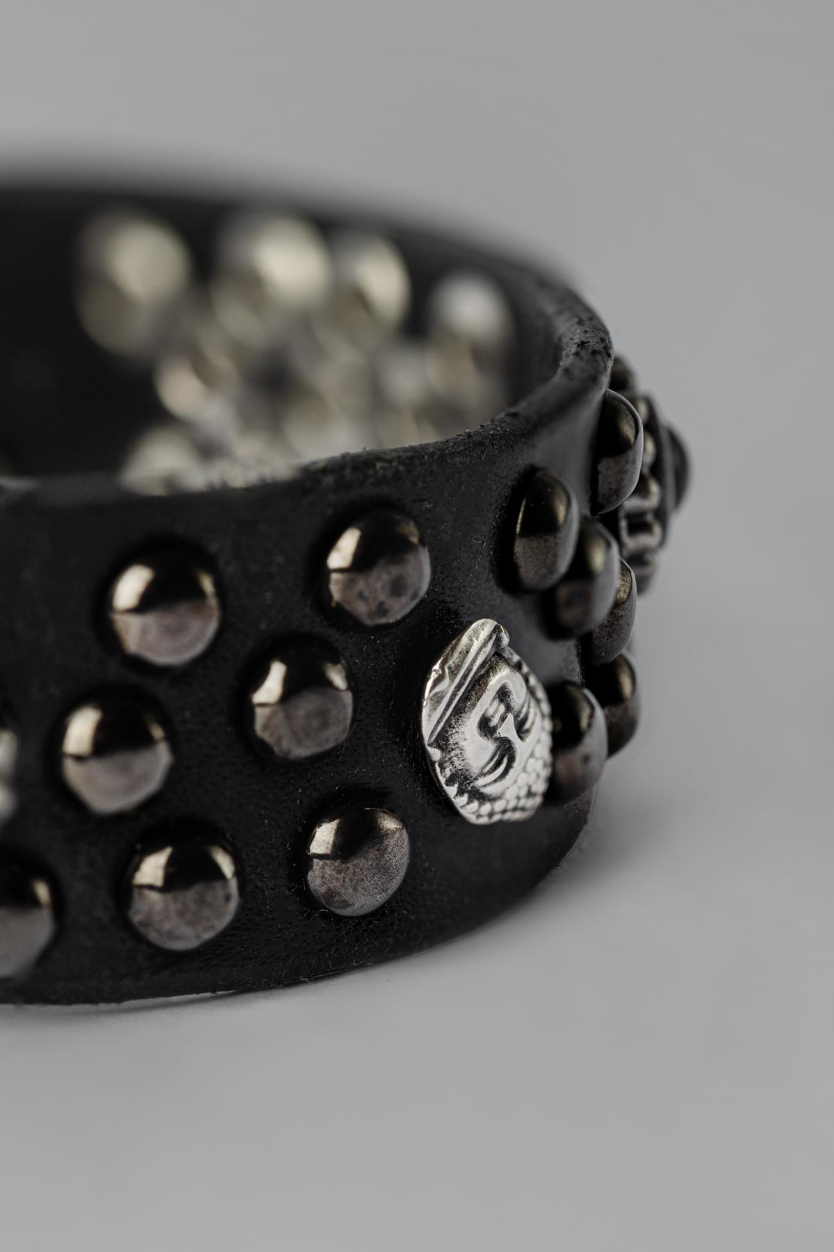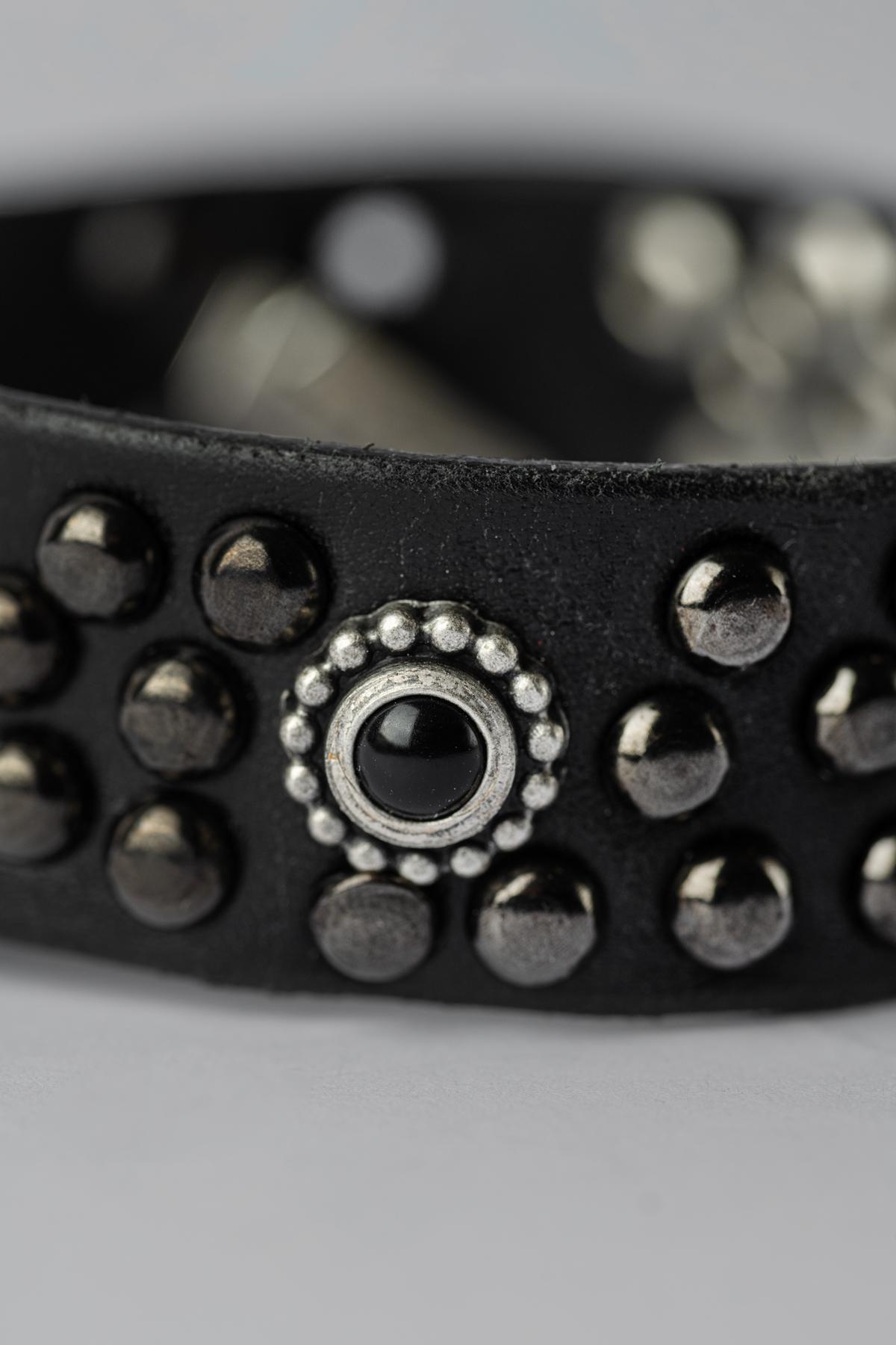 Band bracelet with studs, buddha and onyx stone. Button closure with through hole.Genuine Leather ...