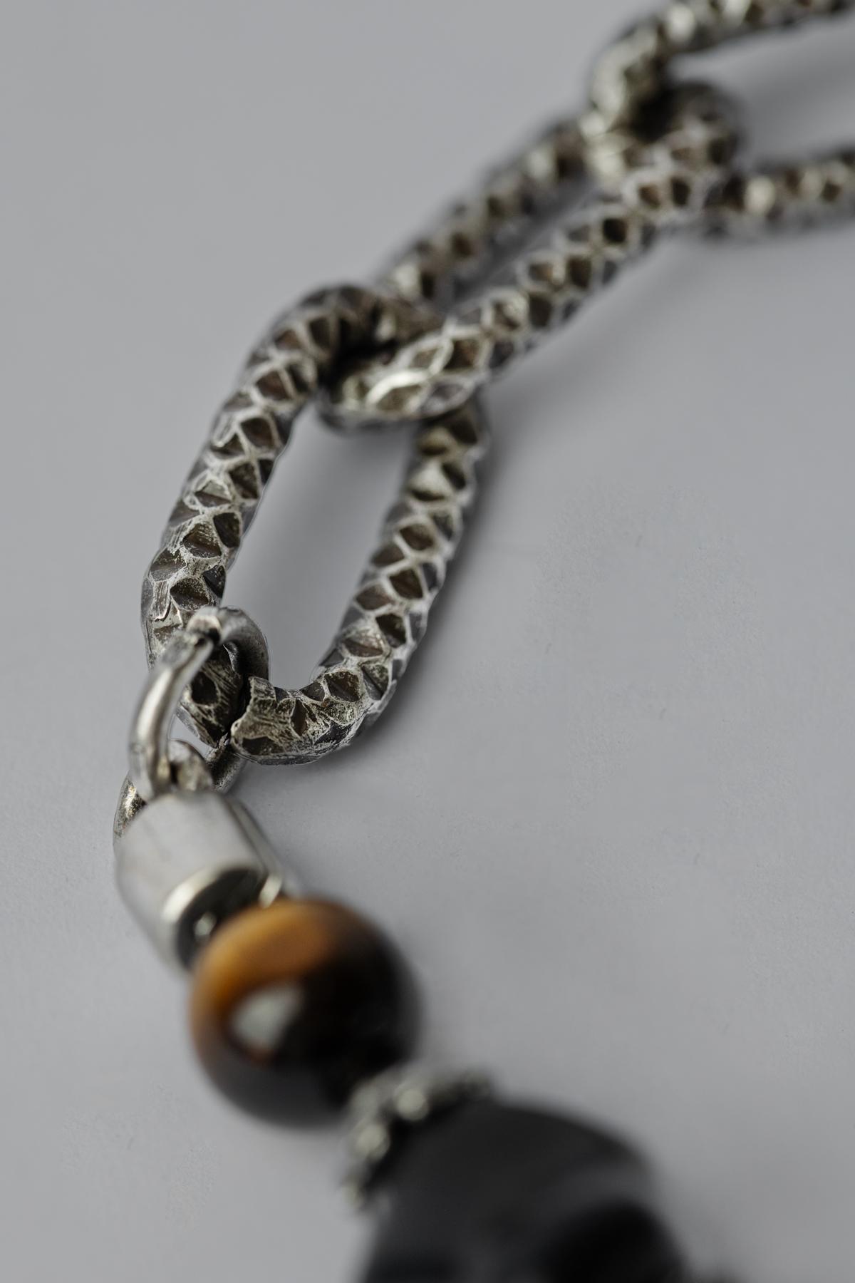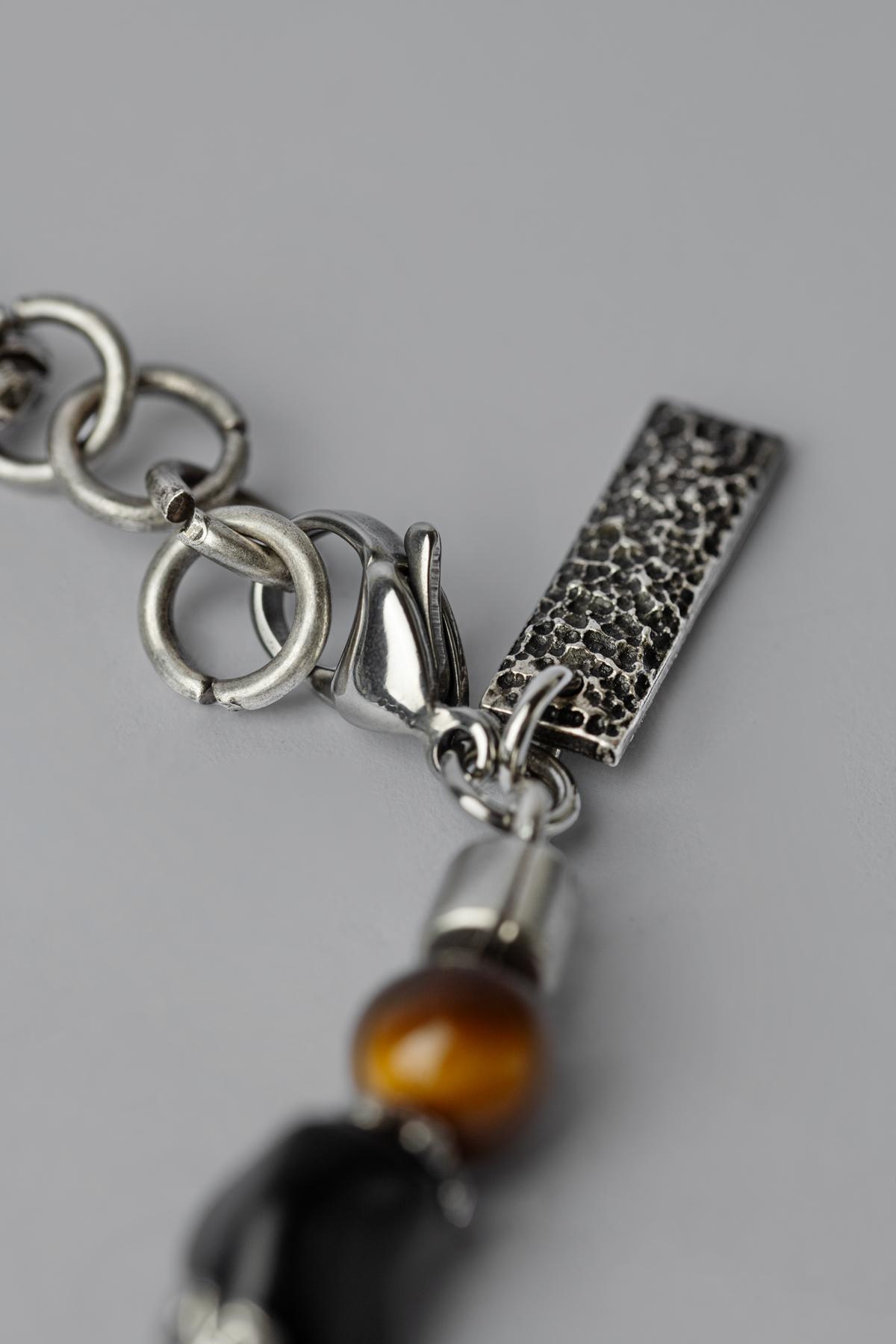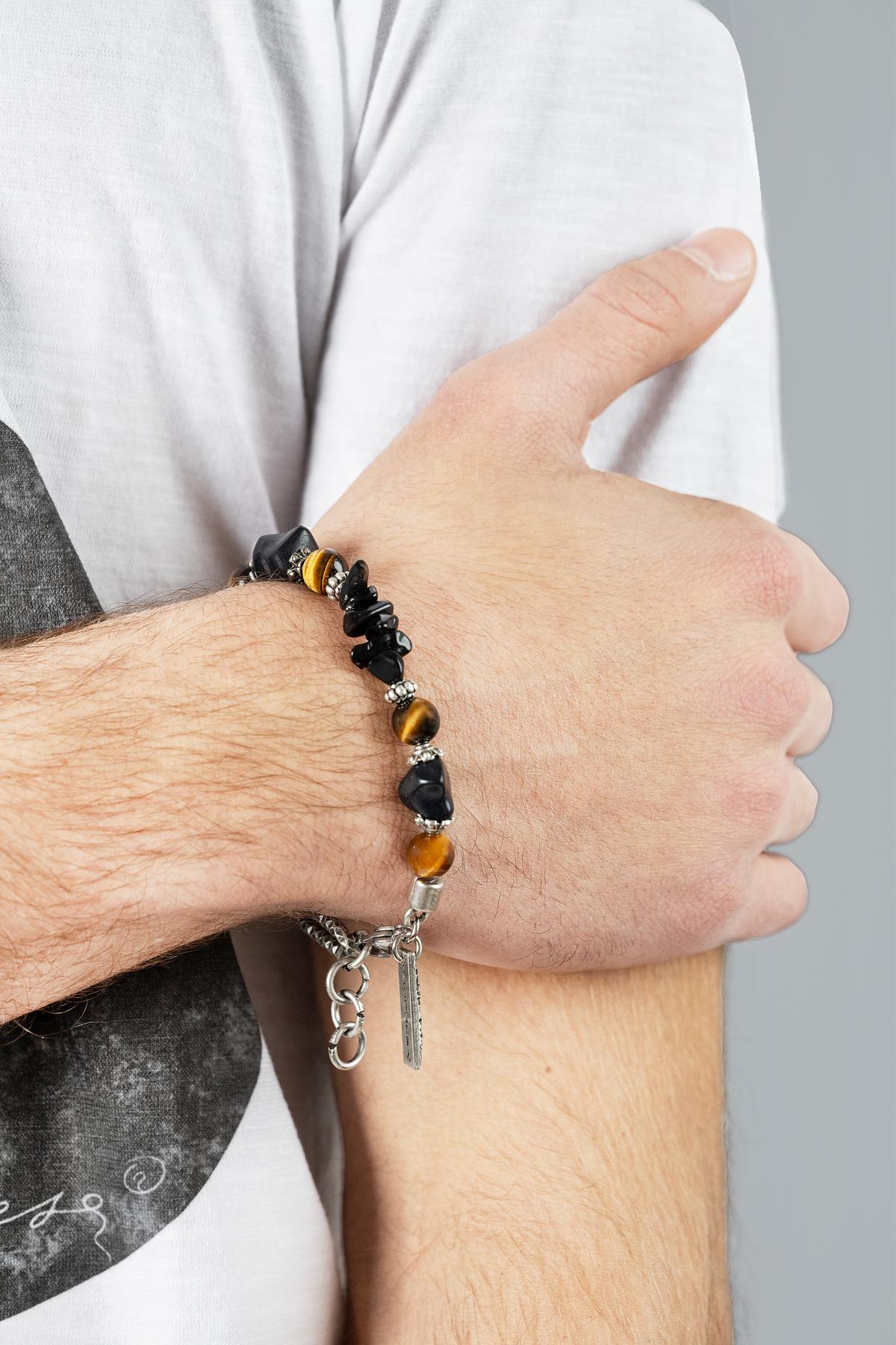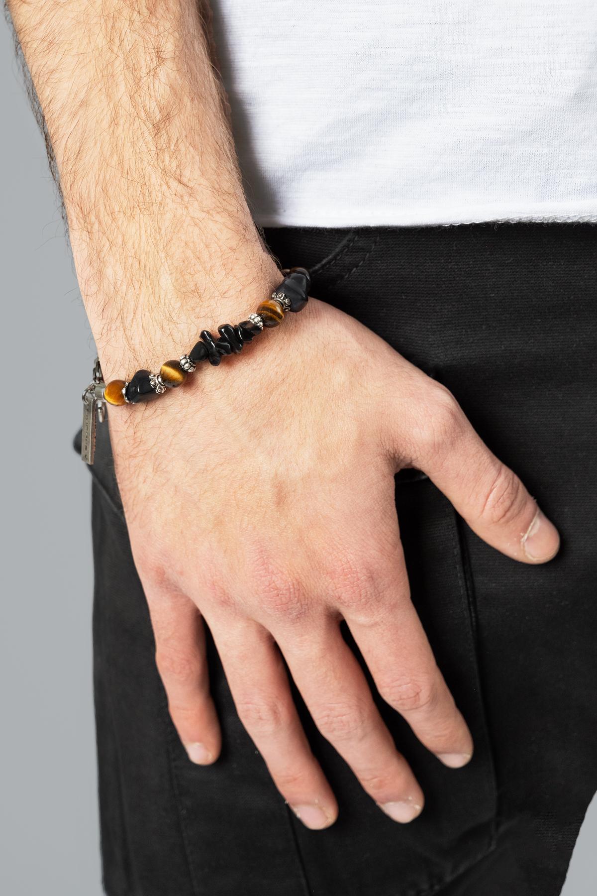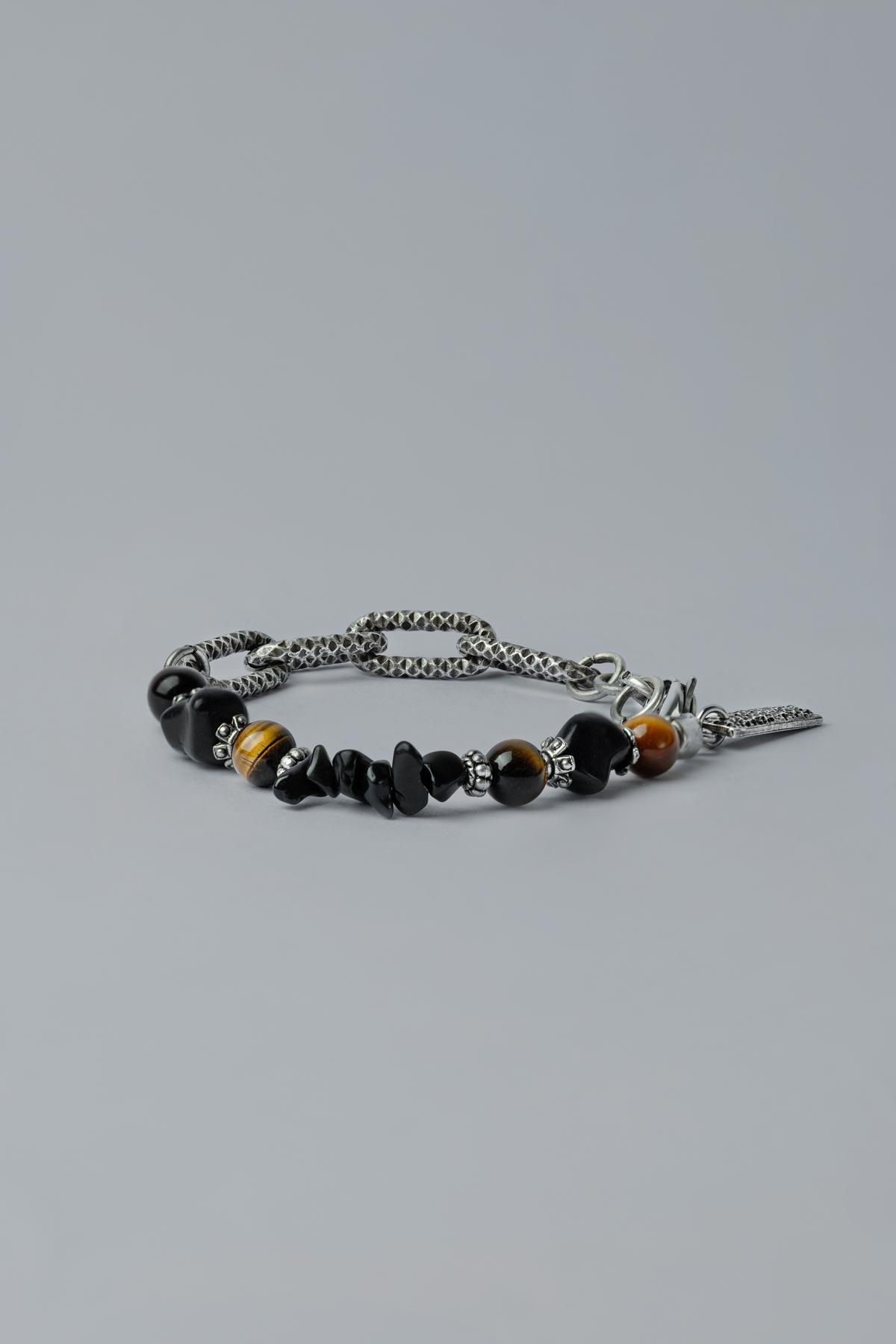 Bracelet with inlaid chain and irregularly shaped stones with brown shades. Adjustable closure with lobster clasp.Silver ...