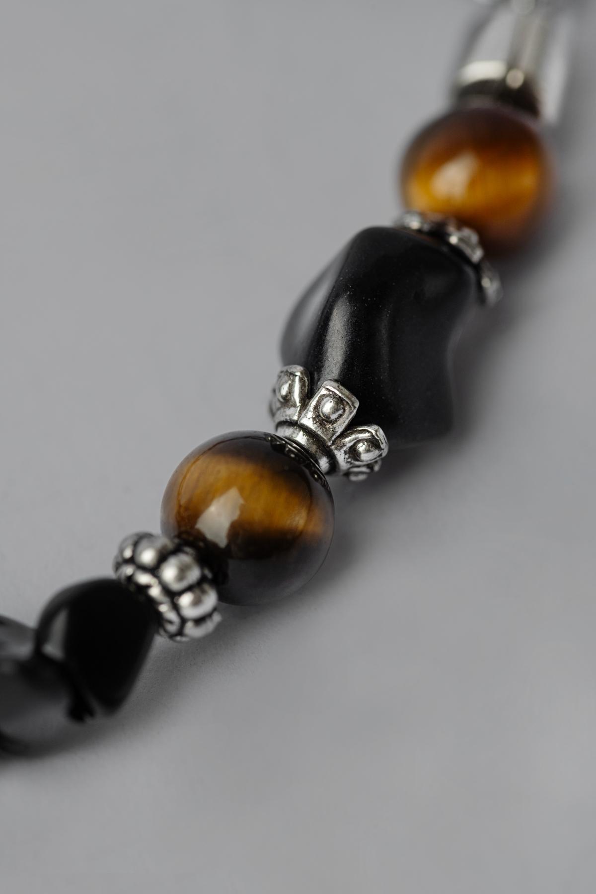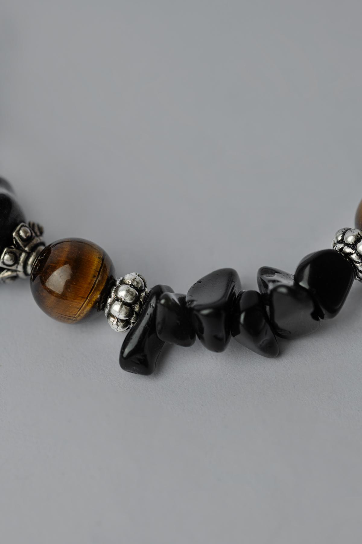 Bracelet with inlaid chain and irregularly shaped stones with brown shades. Adjustable closure with lobster clasp.
