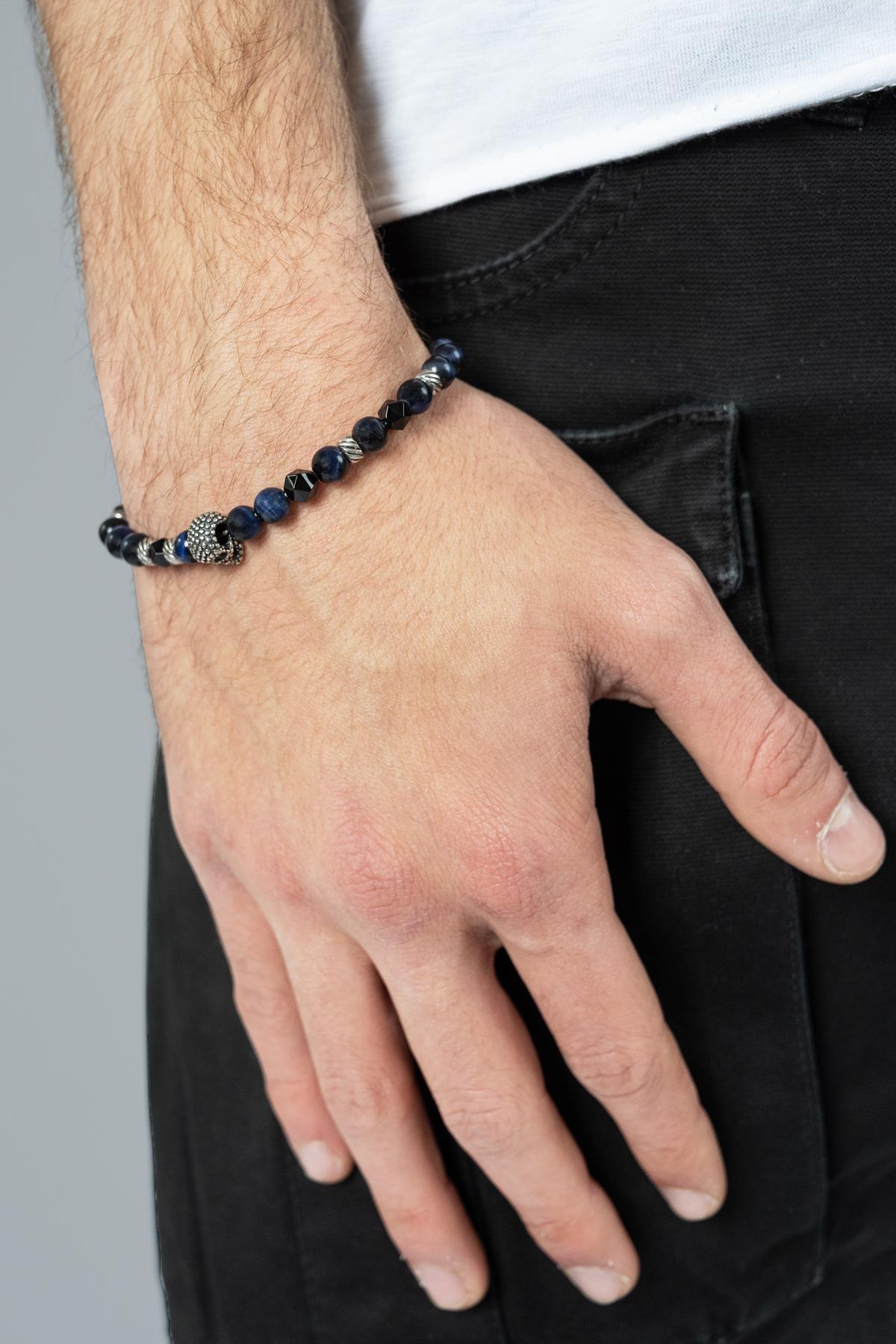 Bracelet with blue stones and skull set swarovski. Adjustable lobster clasp closure.