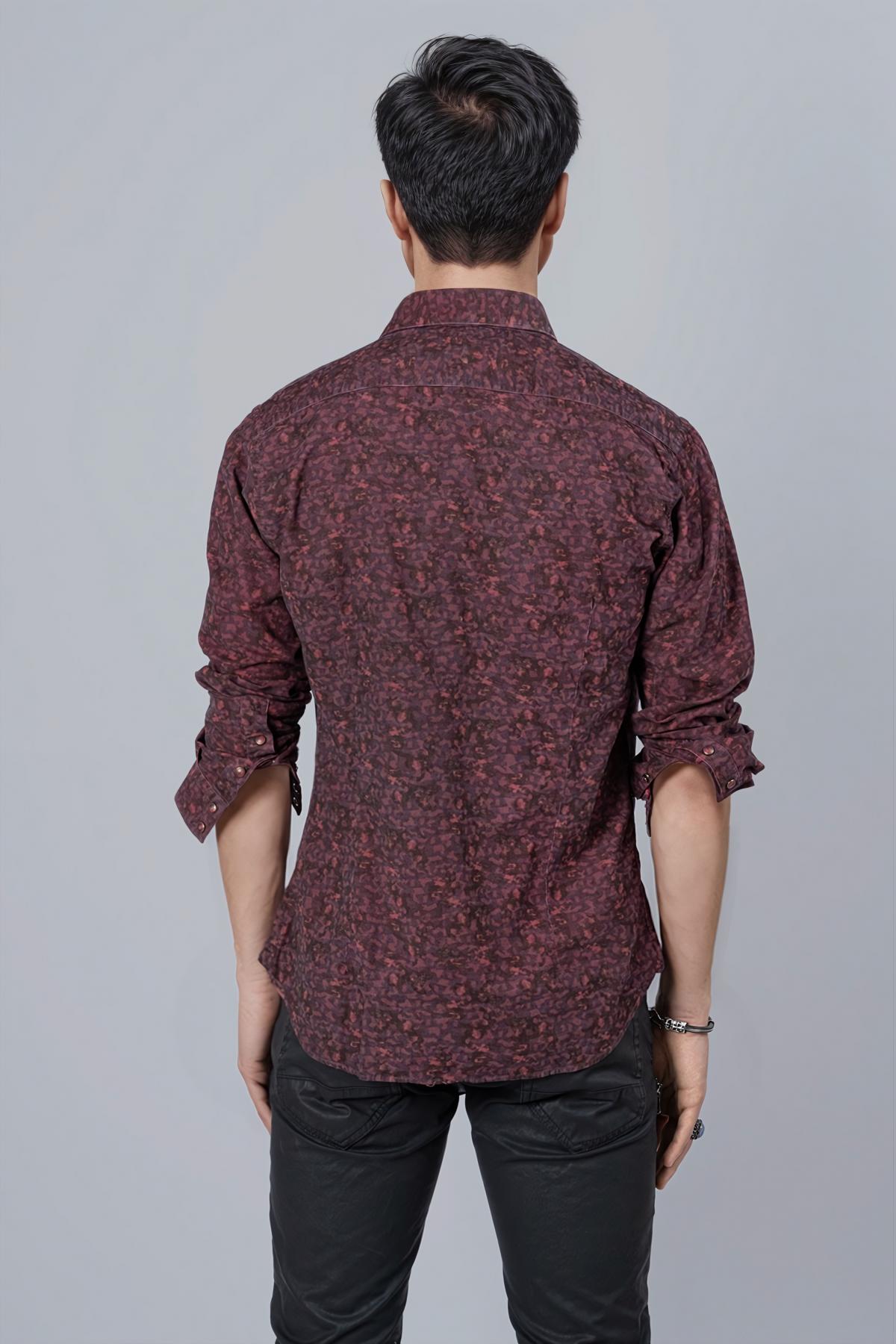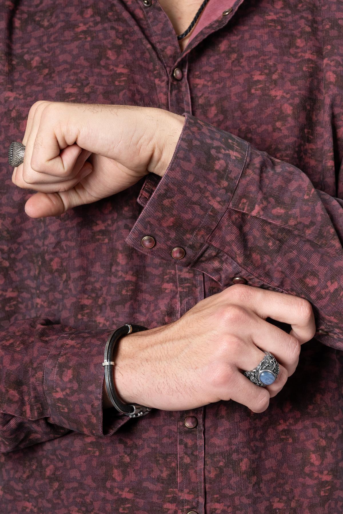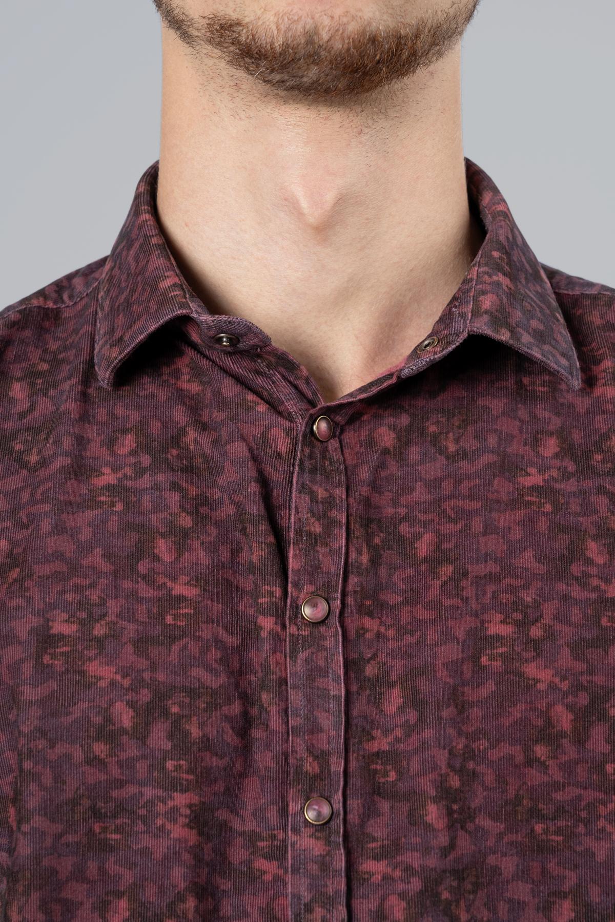 Camouflage patterned milleraies ribbed velvet shirt. Jewel snap buttons.