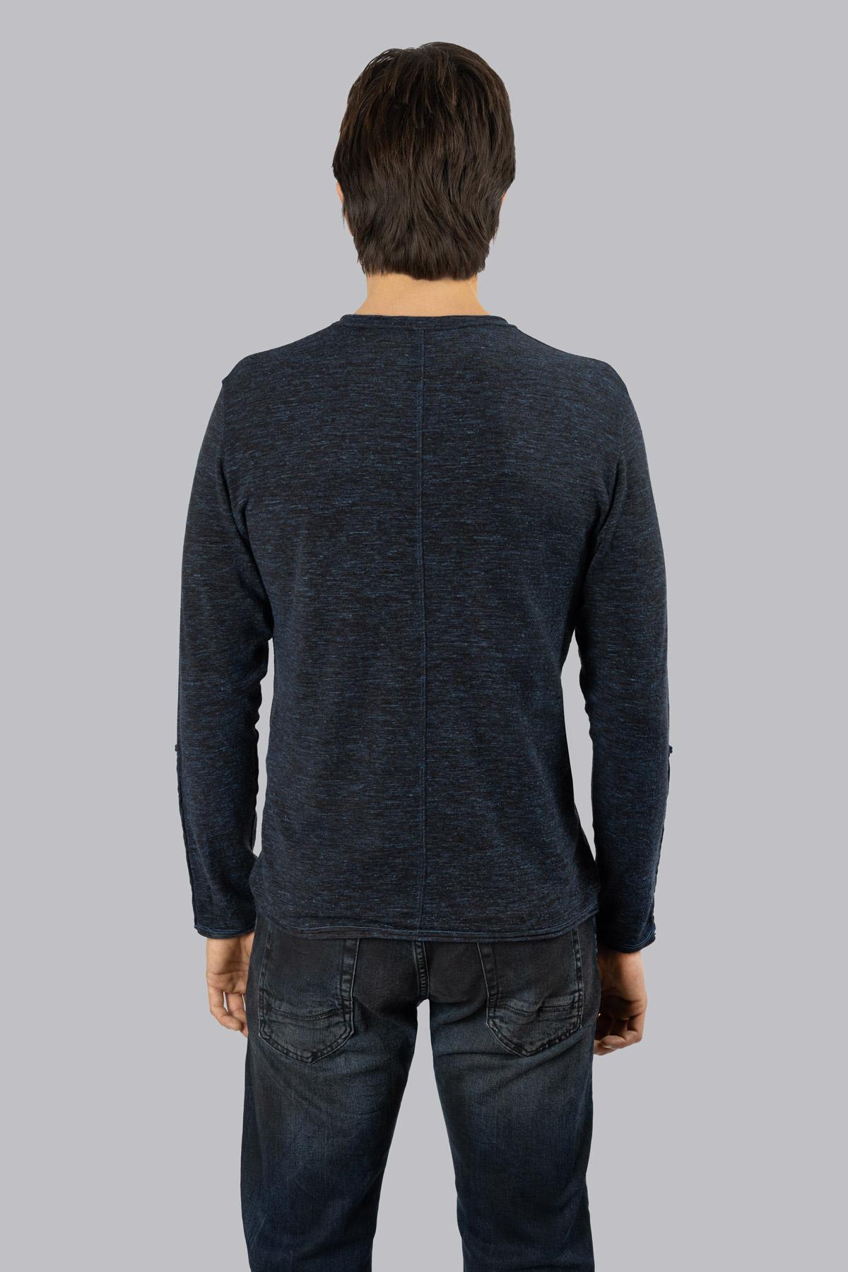 Long-sleeved sweater in 100% cotton, regular and comfortable fit, featuring a crew neckline embellished with coconut wood buttons. The style is completed by a raw-cut hem ...