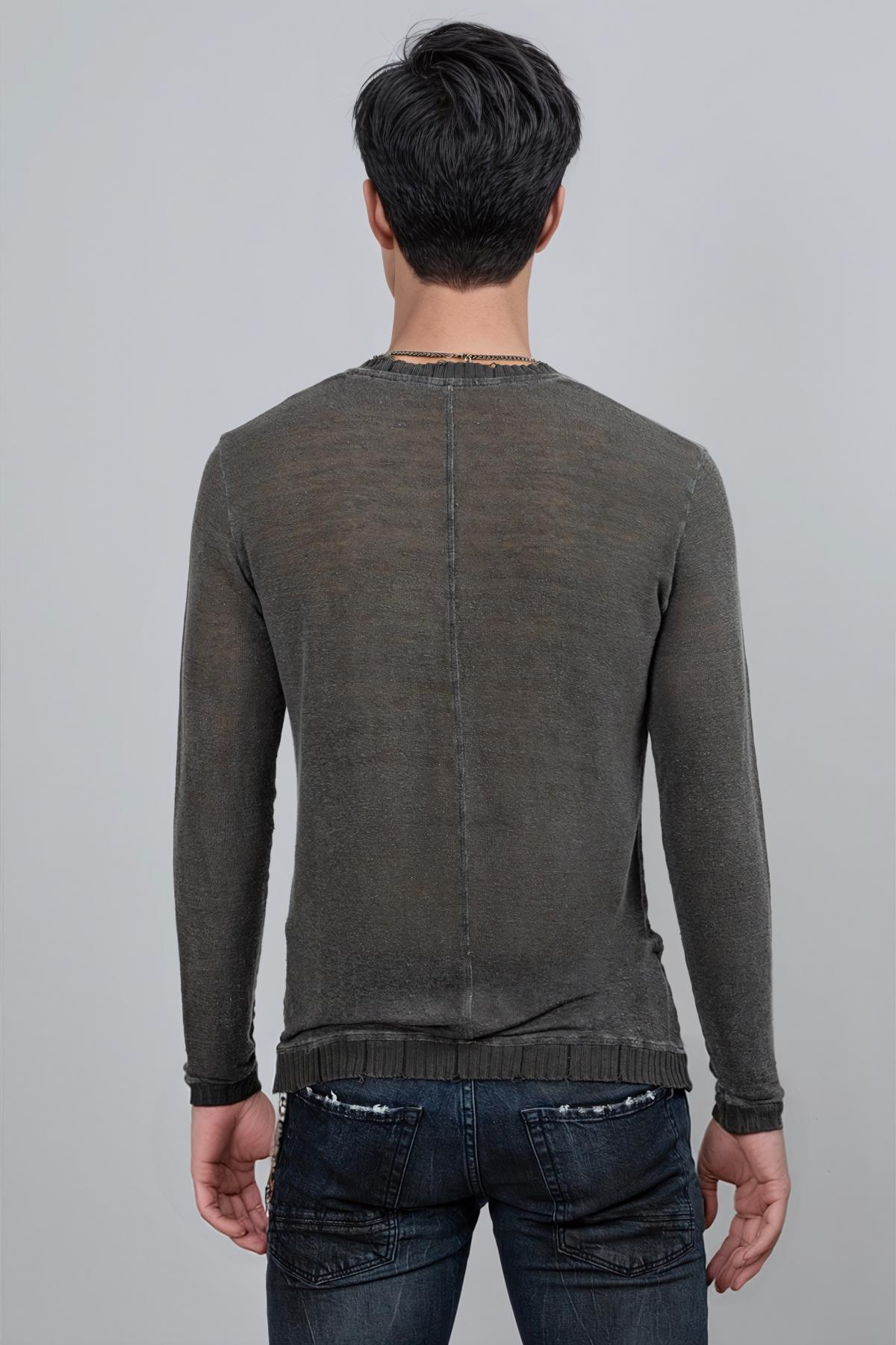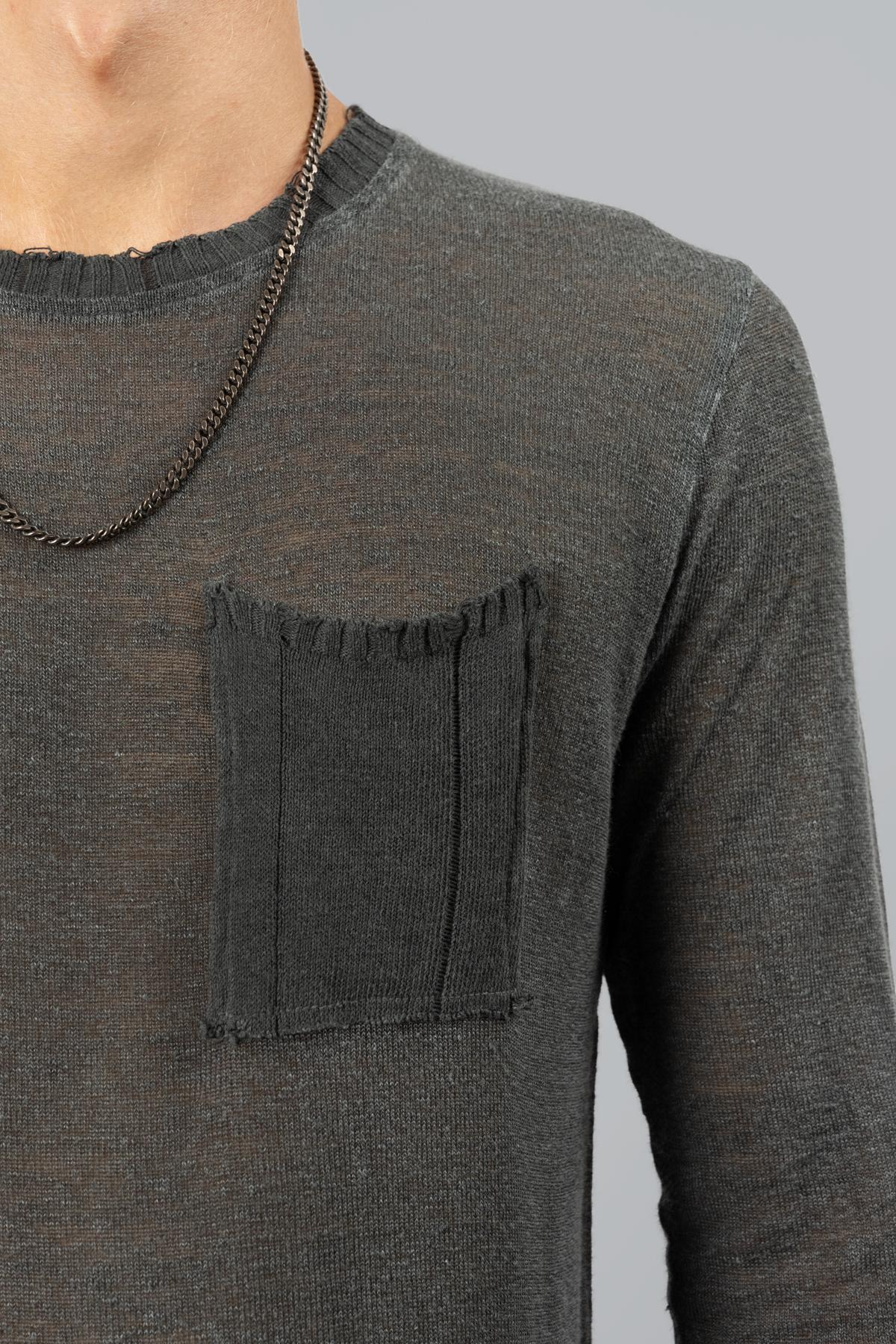 Long-sleeved jersey with transparent effect. Front pocket. Ribbed raw hem. Inside poem print.100% Hemp ...
