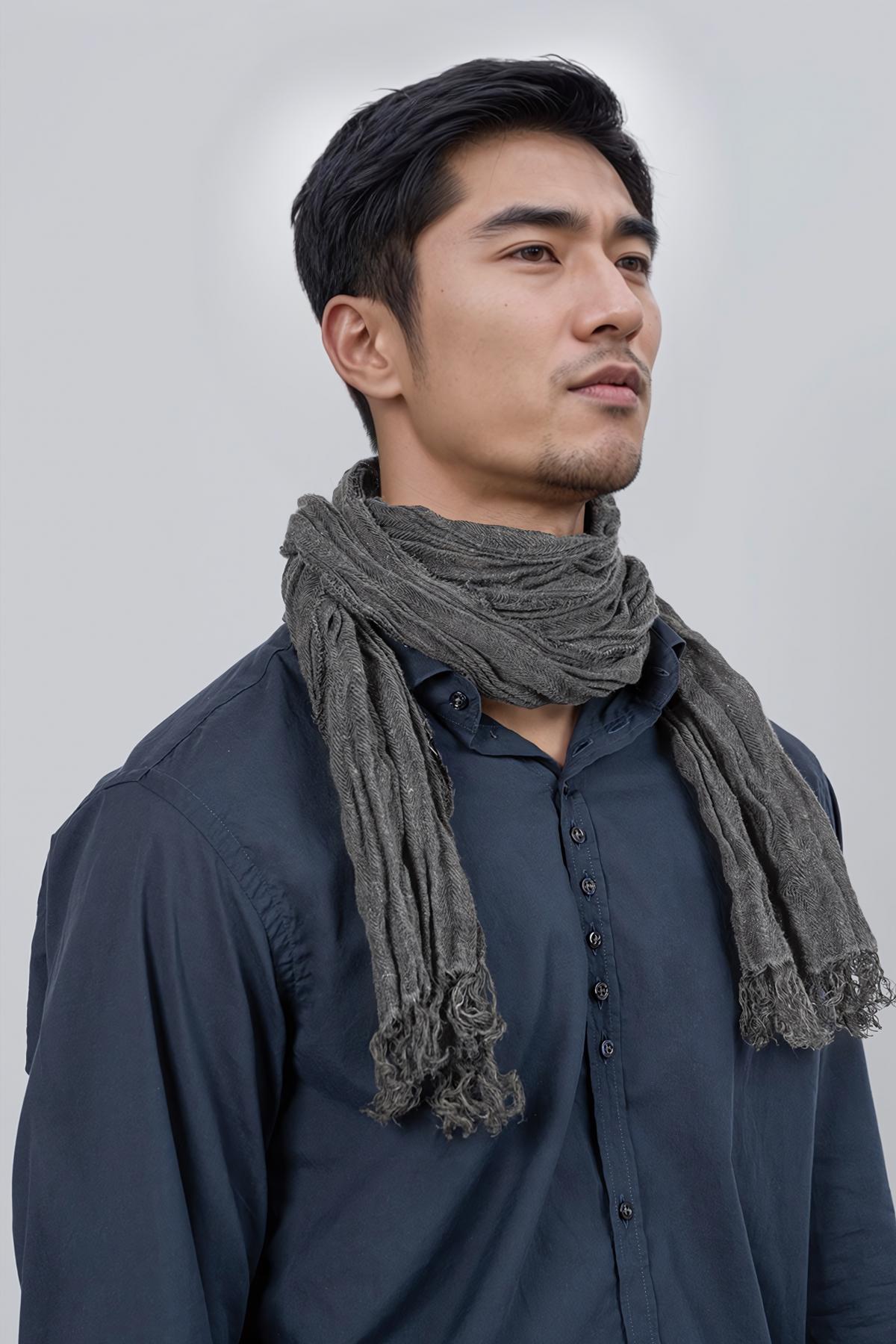 Pure linen herringbone scarf, stonewashed for a distressed effect and soft touch. Finished with fringes.