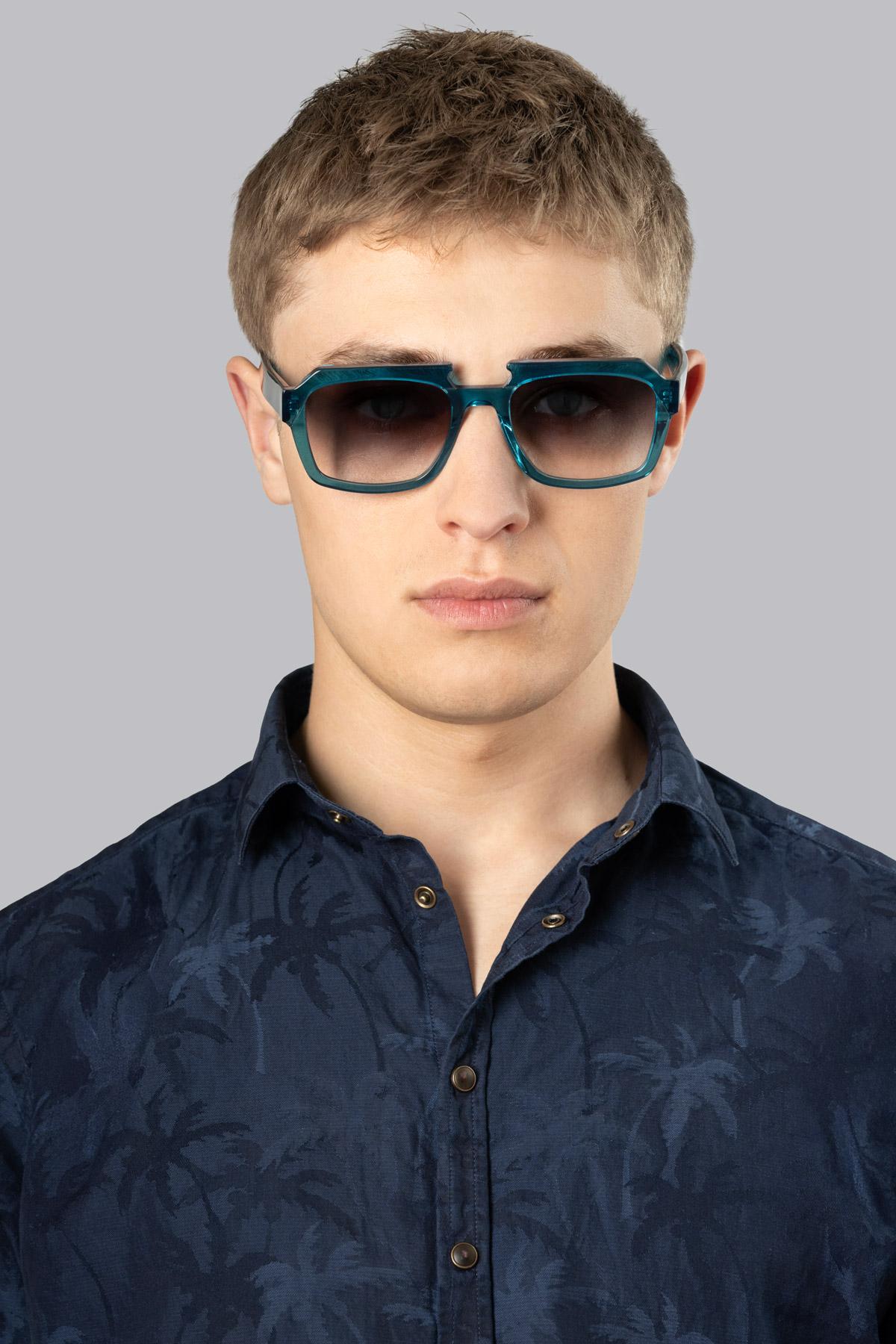 Handmade sunglasses made of high-quality cellulose acetate. Slightly rounded rectangular shaped frame, with a hollowed-out bridge. Lens with maximum UV protection.