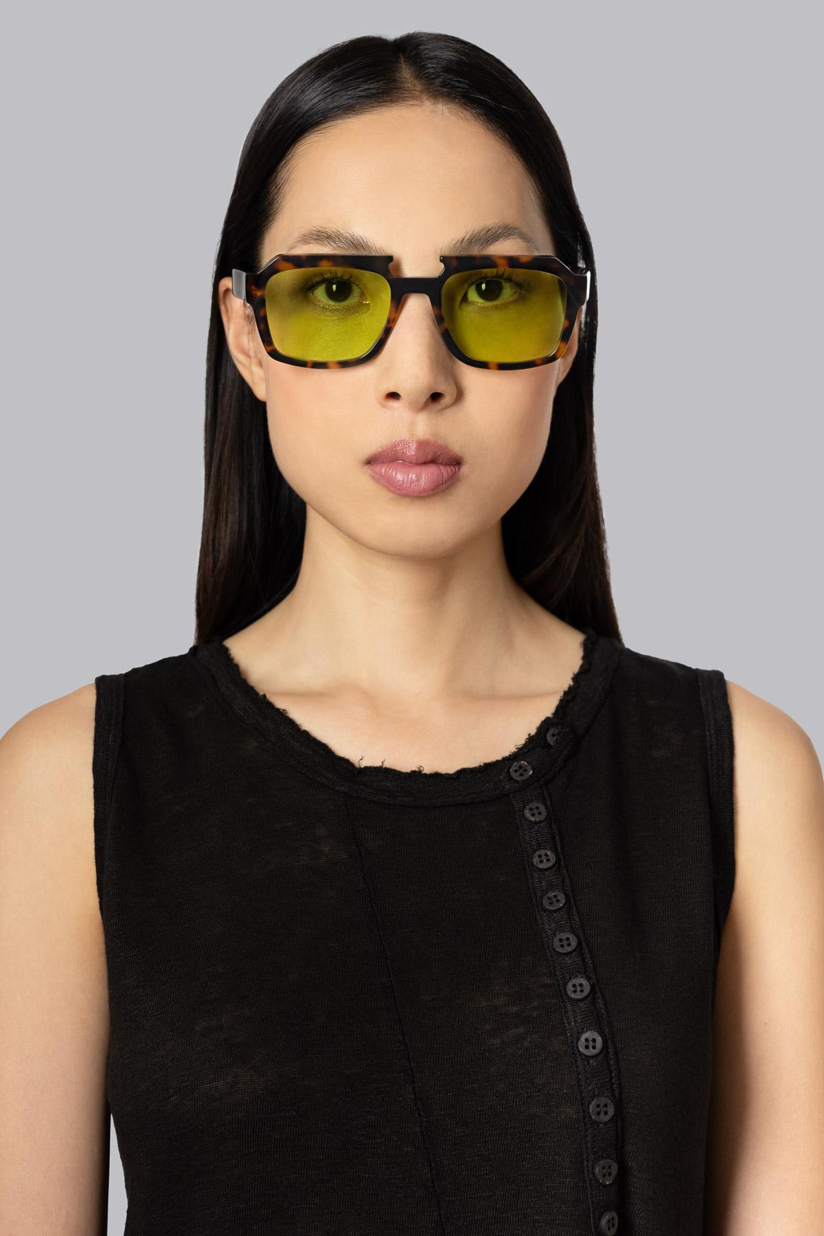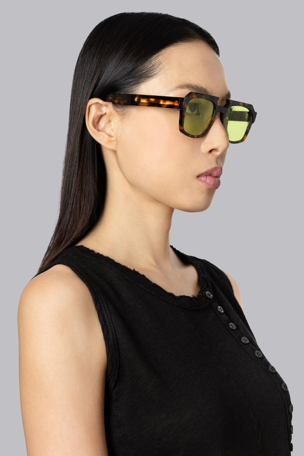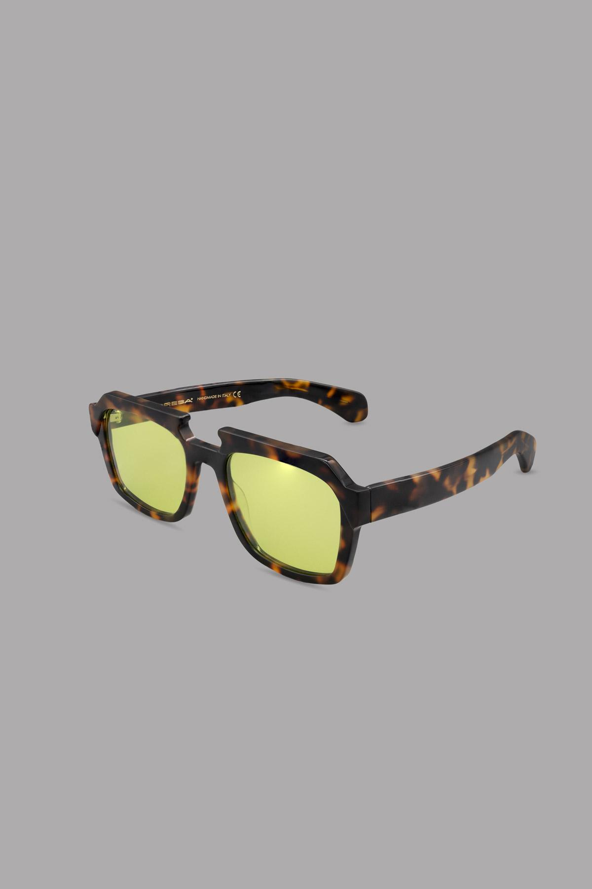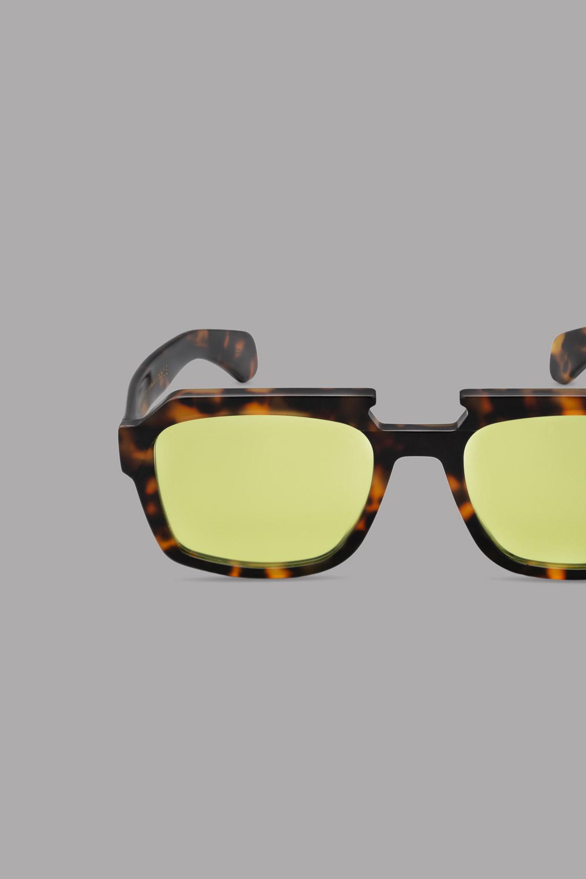 Handmade sunglasses made of high-quality cellulose acetate. Slightly rounded rectangular shaped frame, with a hollowed-out bridge. Lens with maximum UV protecti ...