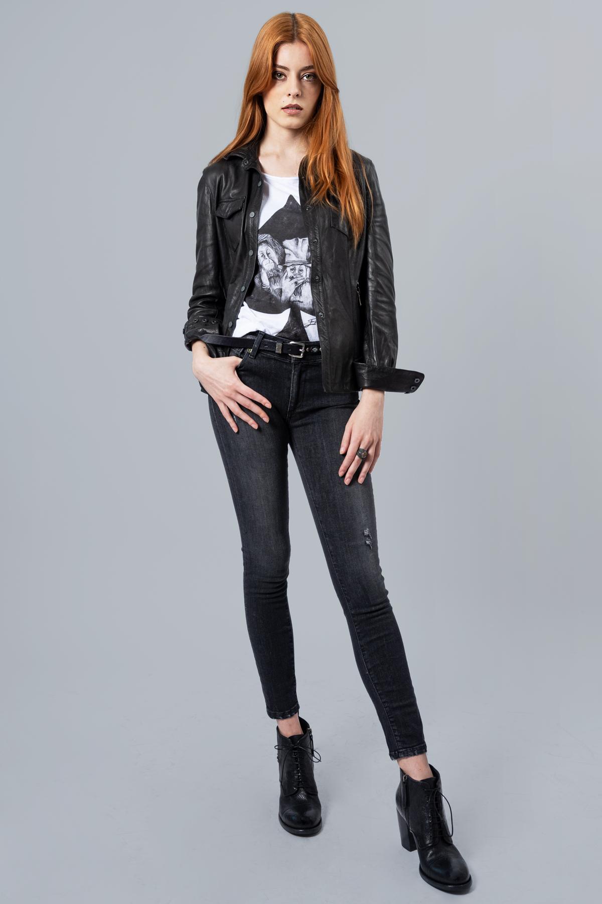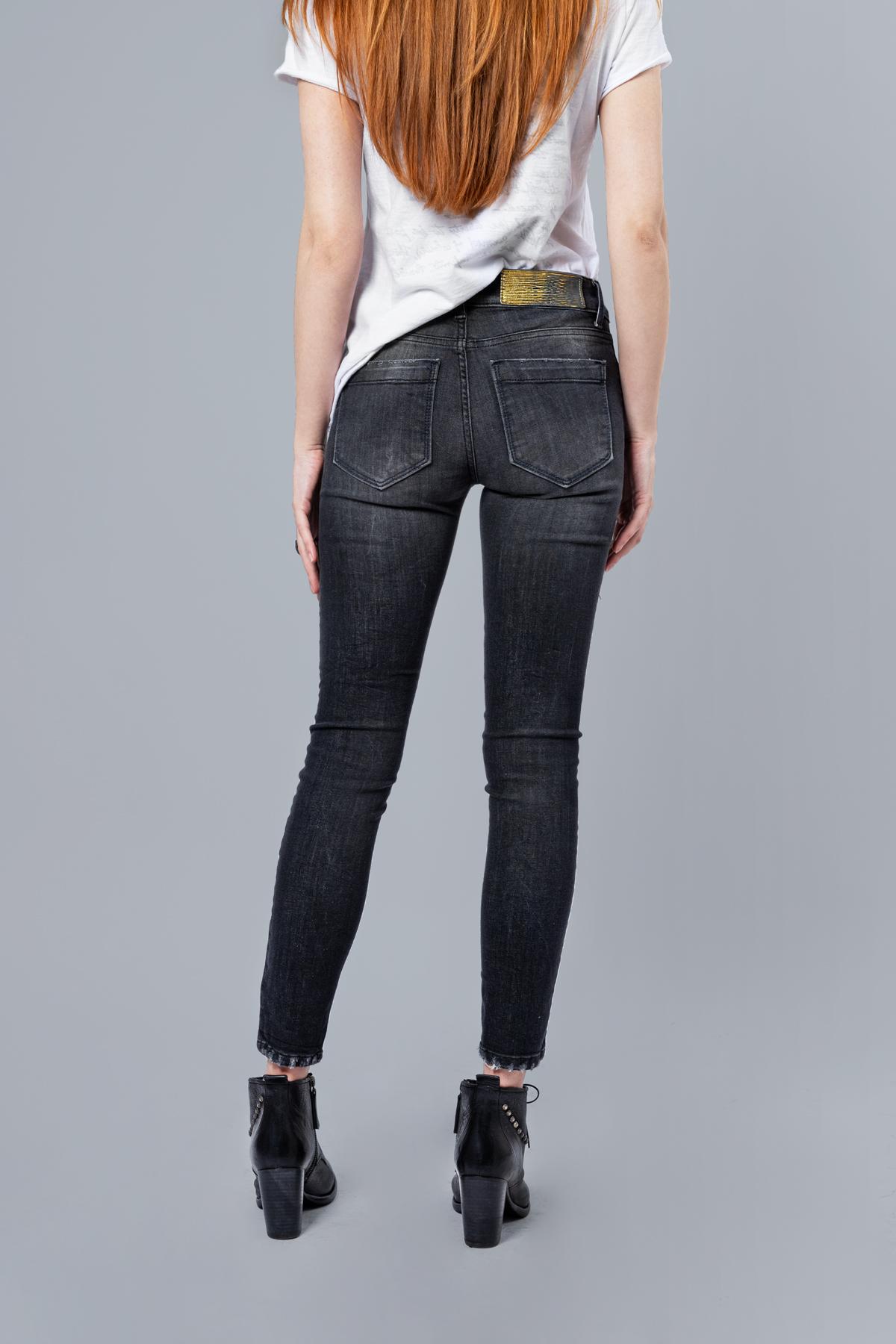 Cotton skinny jeans. Green zamak buttons. Ruined effect back pockets. Leather salpa.98% cotton, 2% elastane ...