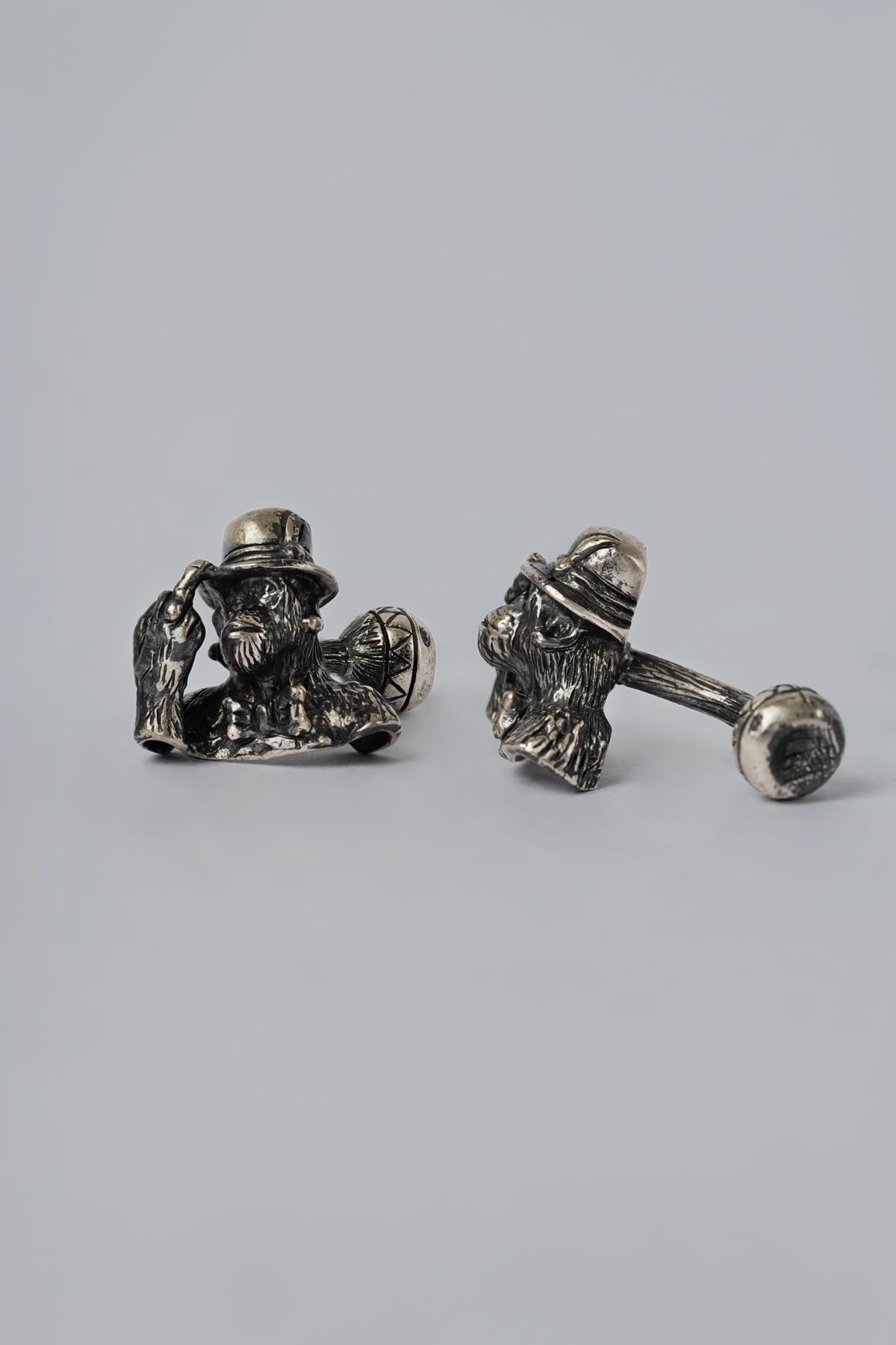 Boldly designed cuff links depicting a monkey showing his middle finger, perfect for those who like to add a touch of irony and originality to their style.