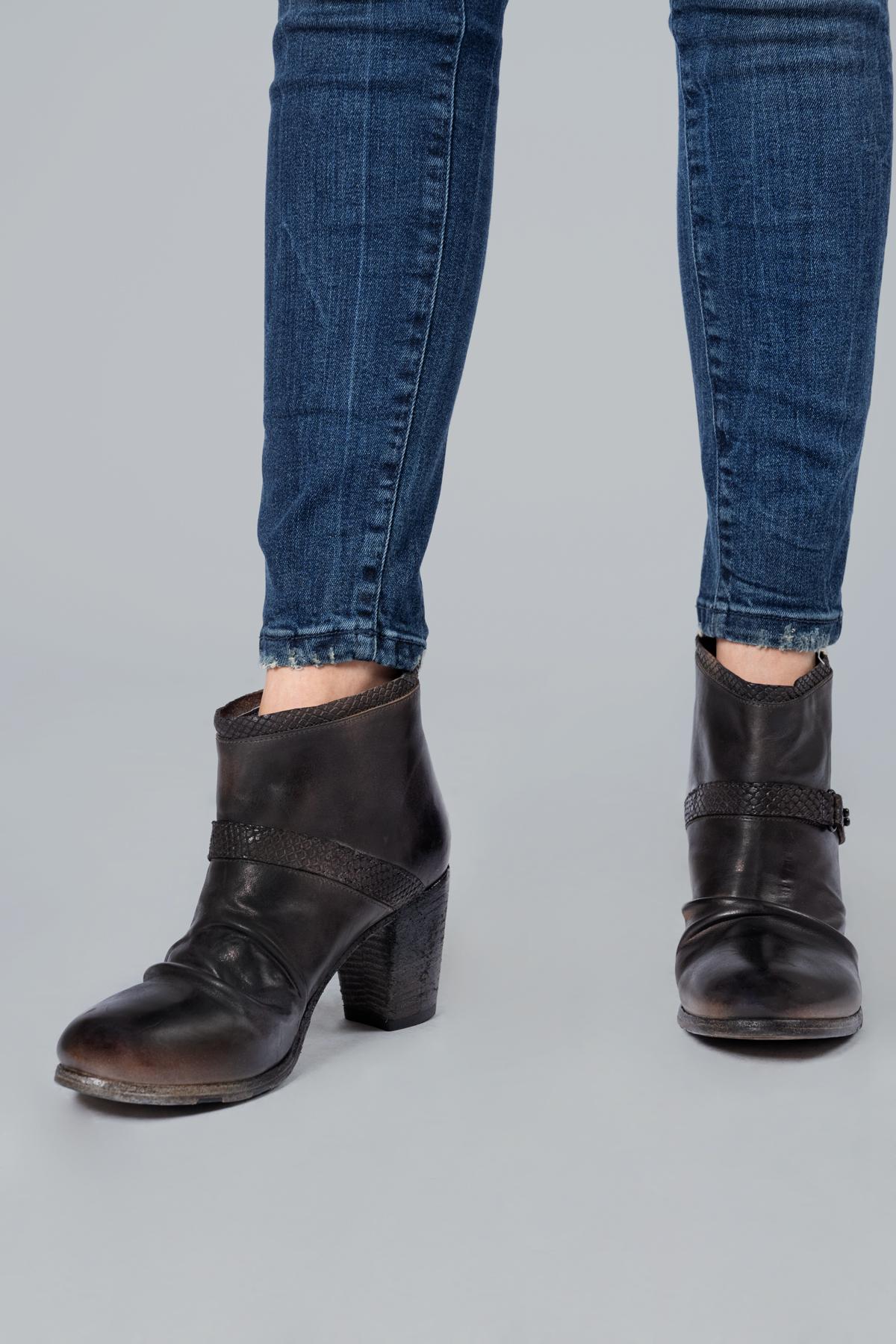 Ankle boots with leather heel, made of genuine hand-padded leather. An exclusive design enriched with python-print leather details. Equipped with an adjustable buckle and ...