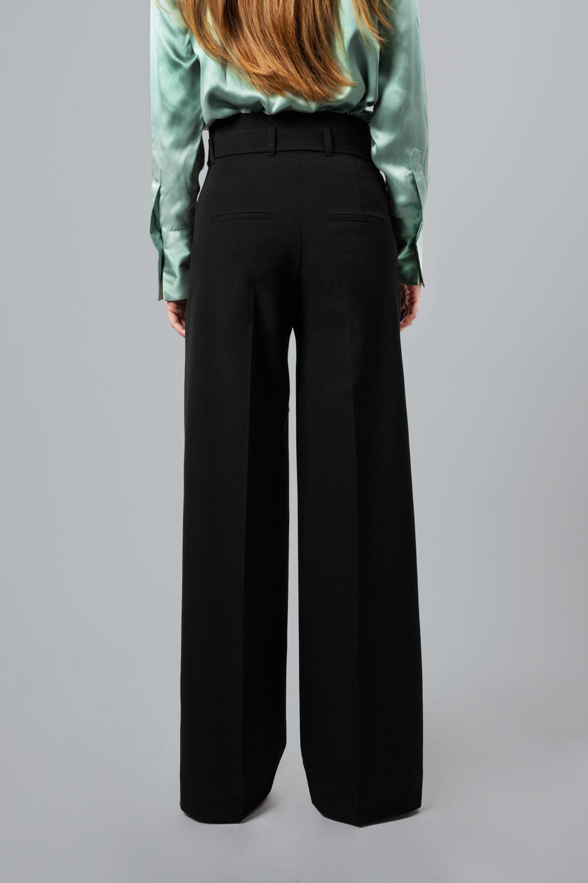 High-waisted palazzo pants. Waist belt with stud applications.53% Polyester; 43% Wool; 4% Elastane ...