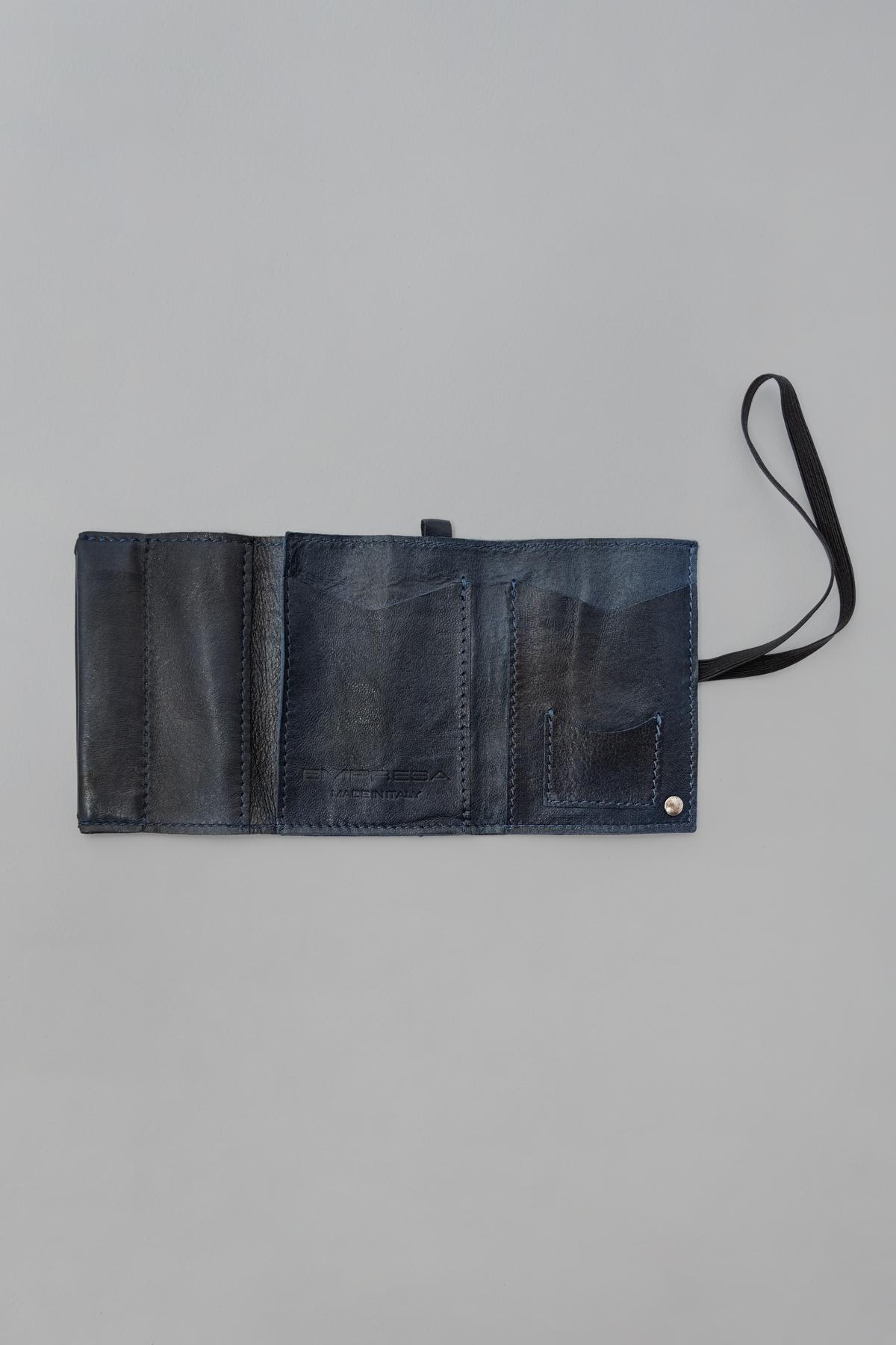 Genuine leather wallet, embellished with a skull-shaped stud. Section for banknotes, coins and card holders. Leather flap for hanging a hook or snap hook. Elastic closure ...