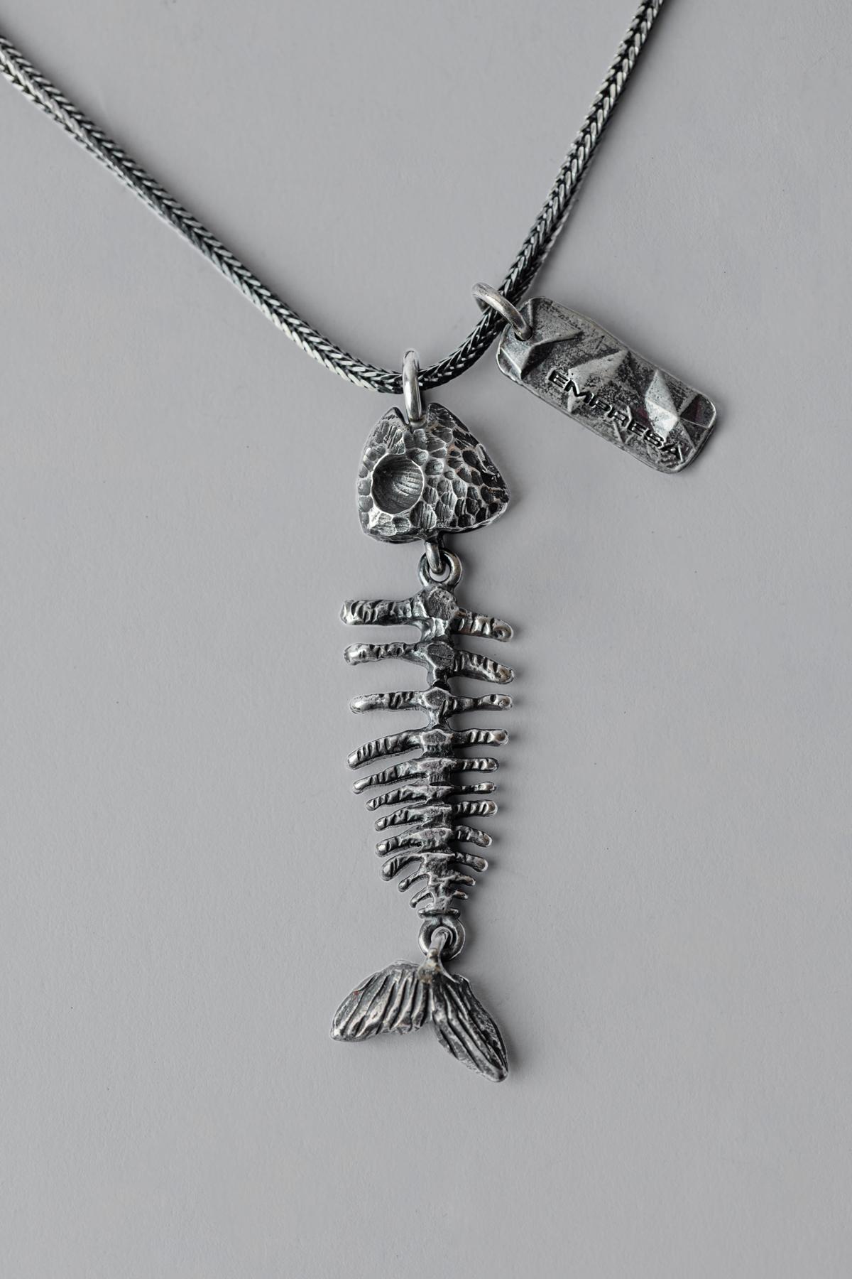 Silver necklace with fishbone pendant. Lobster clasp closure.925 Silver ...