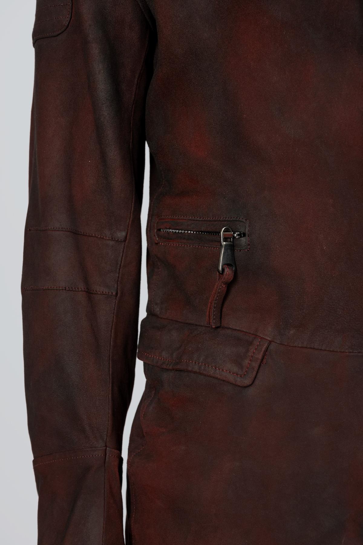 Unlined suede jacket. Central four buttons closure. Two flap pockets and two zipped pockets on the front. Zip on sleeves.
