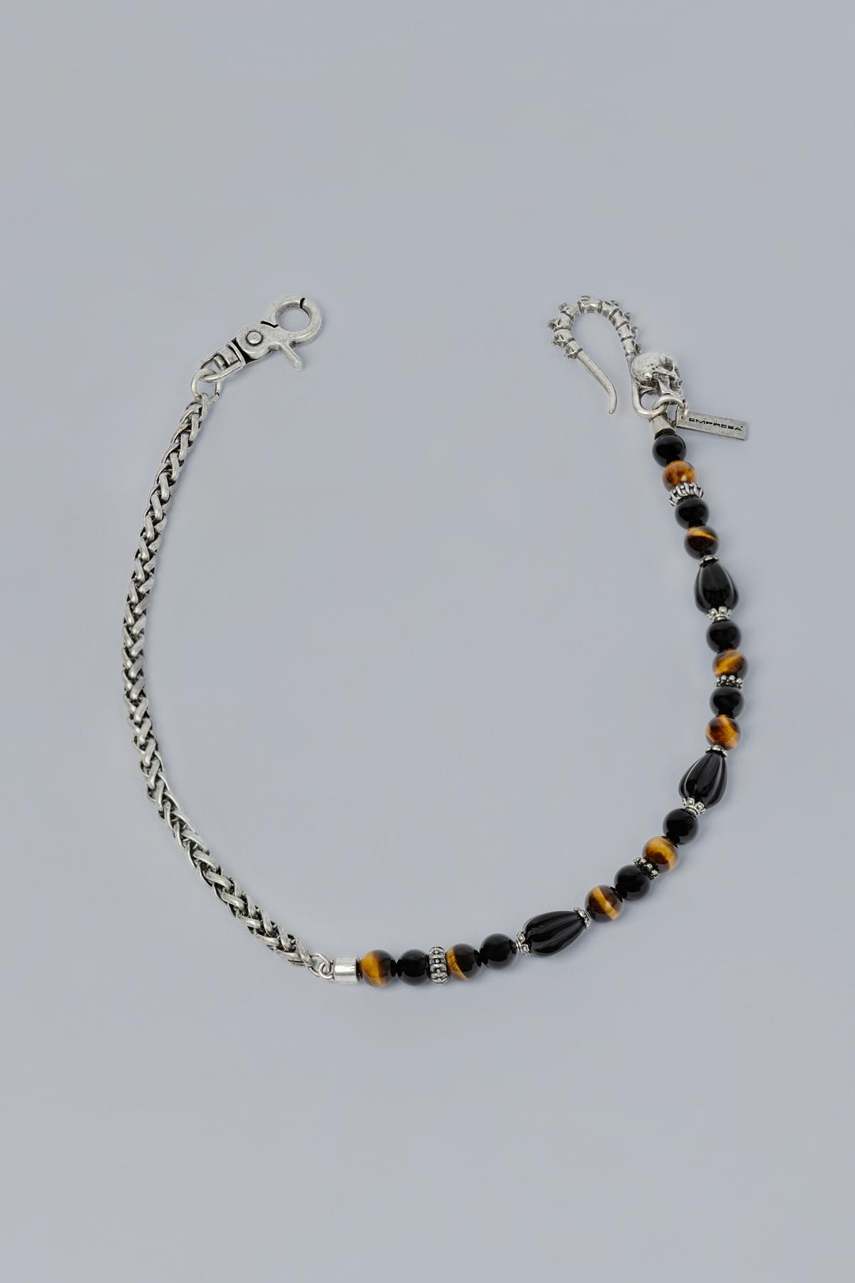 Trouser chain with natural stones. Hook with skull. Lobster clasp closure.