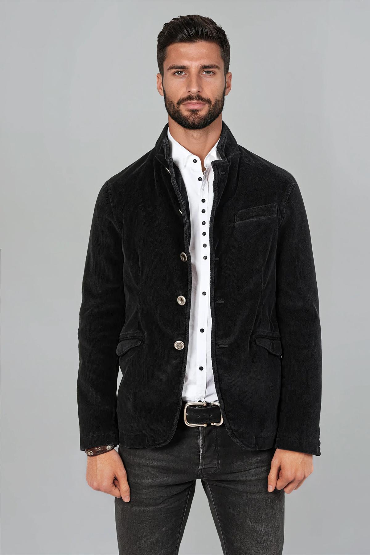 Black stone washed corduroy jacket with hammered metal buttons. Inner lining with poetry print.92% Cotton; 2% Elastane ...