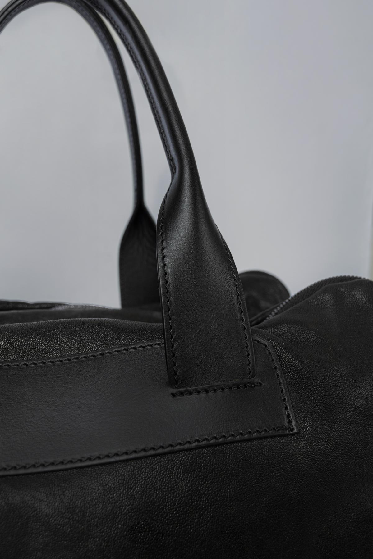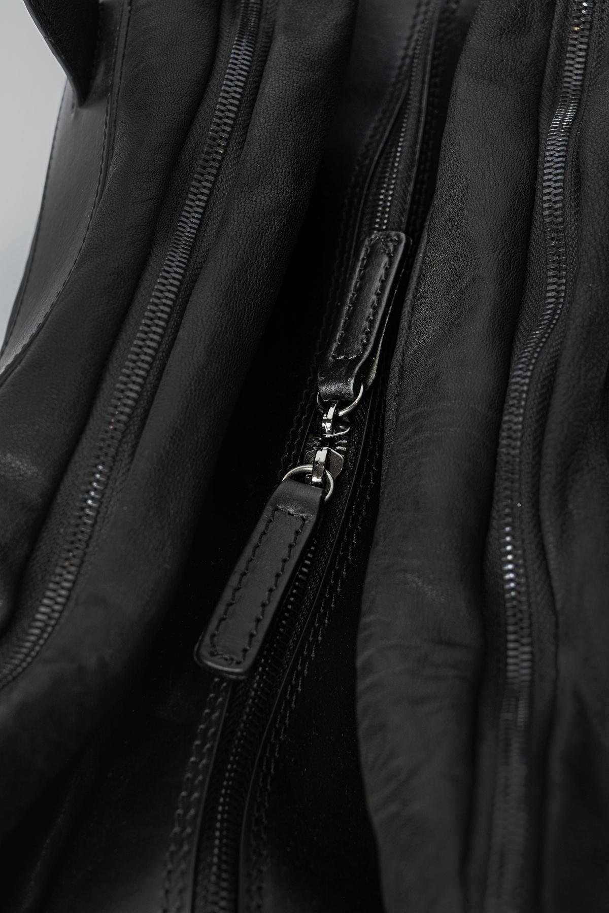 Genuine leather handbag. Three zippered compartments. Removable shoulder strap.