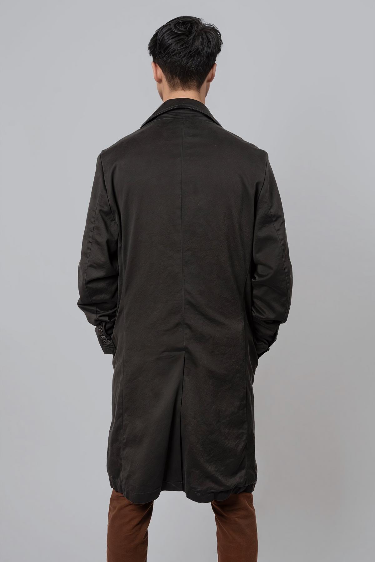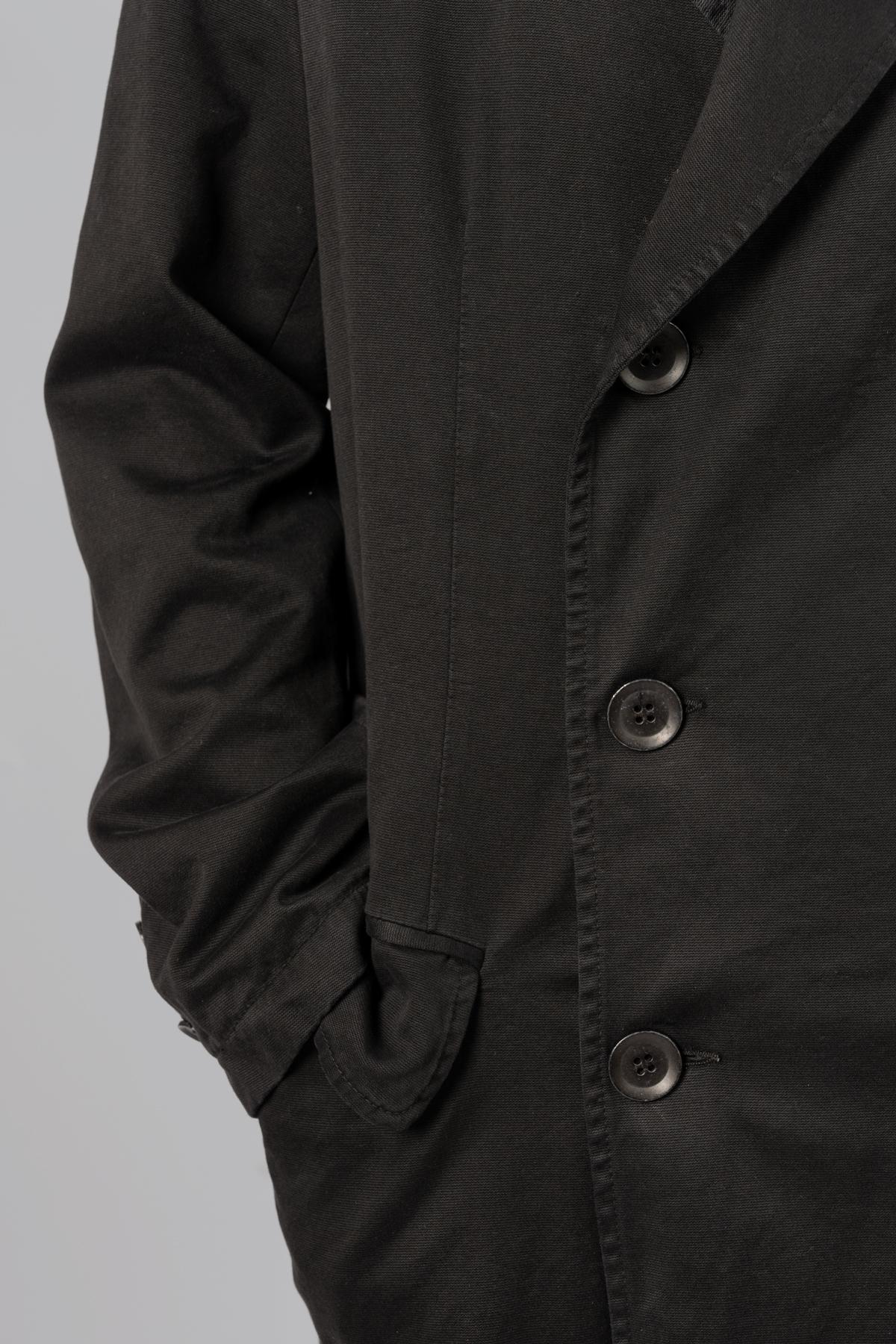 Cotton-blend double-breasted coat. Buttons on the sleeves and two flap pockets on the front.