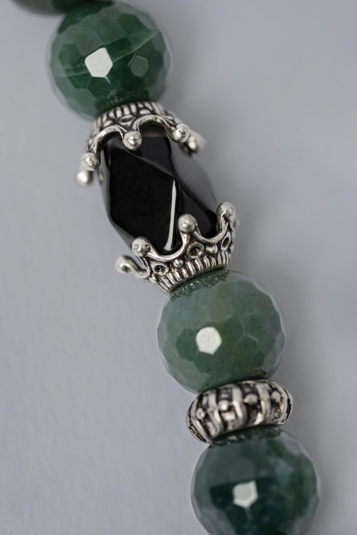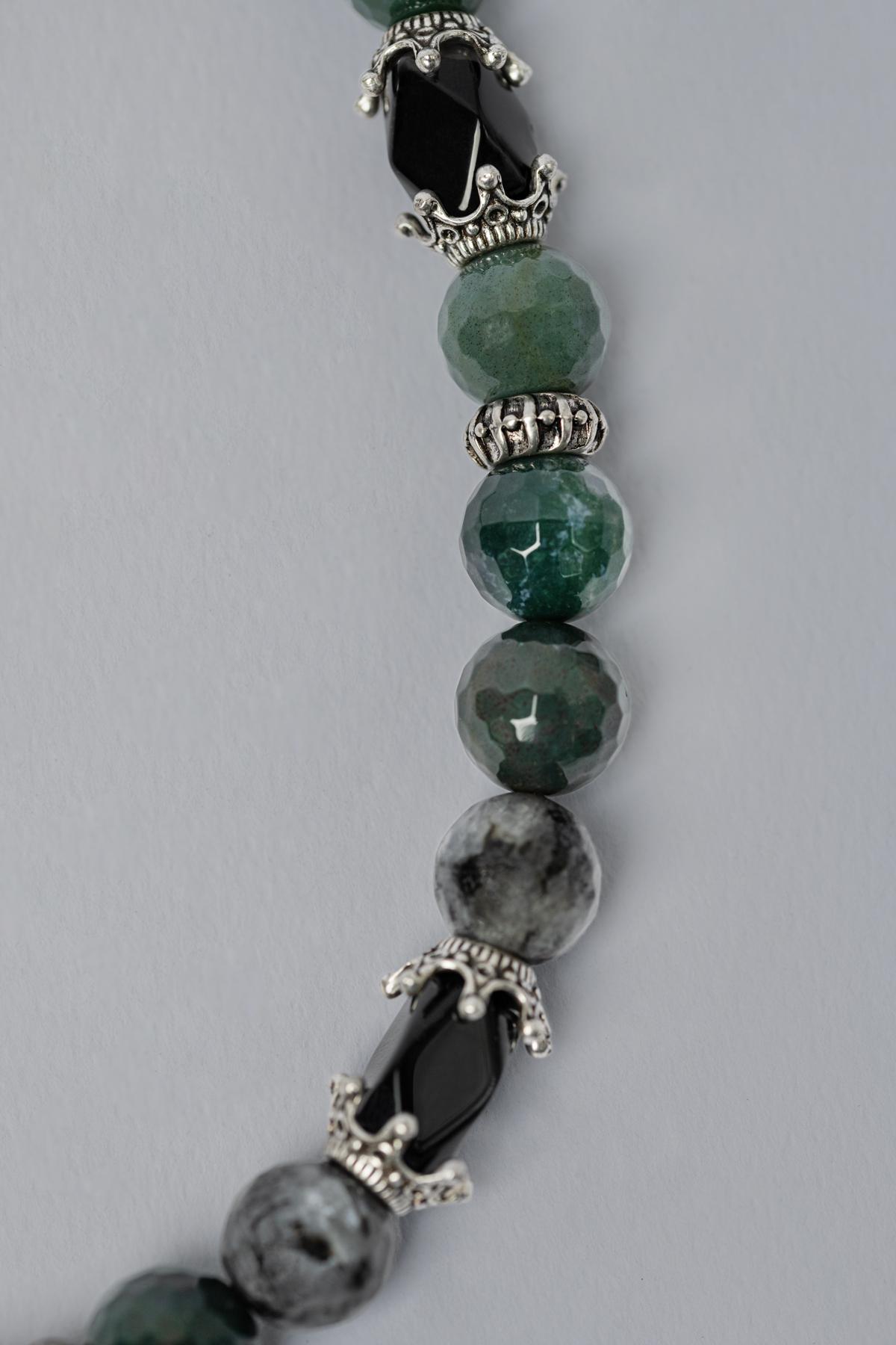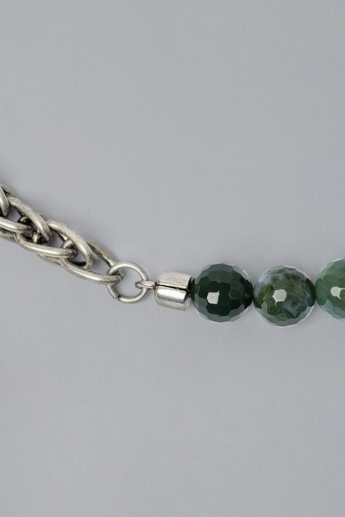 Trouser chain with green natural stones. Hook with engraved roses and feather pendant. Can also be worn as a necklace.