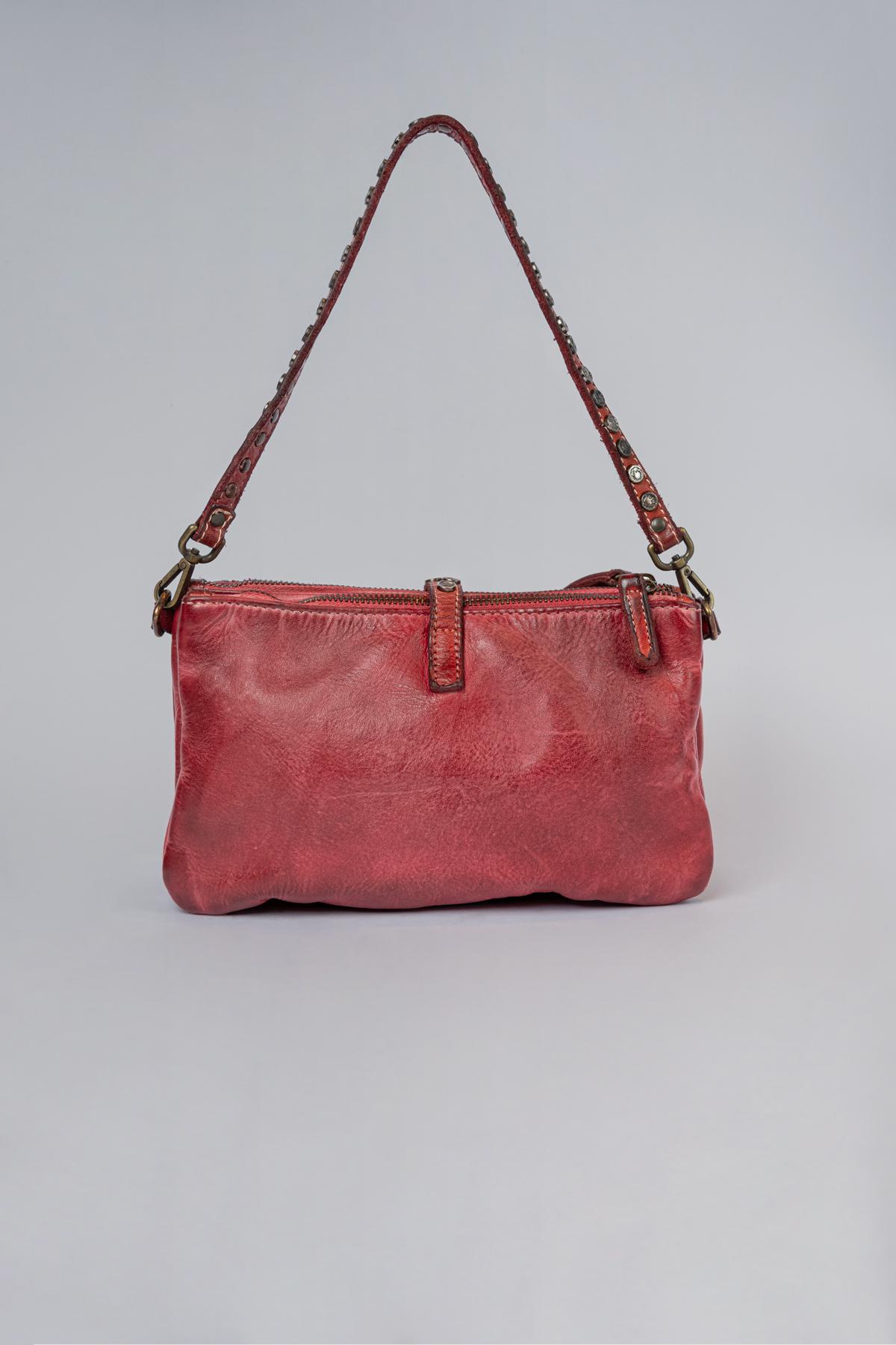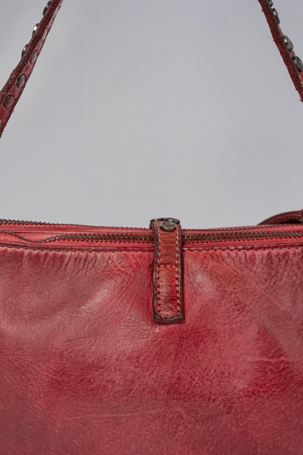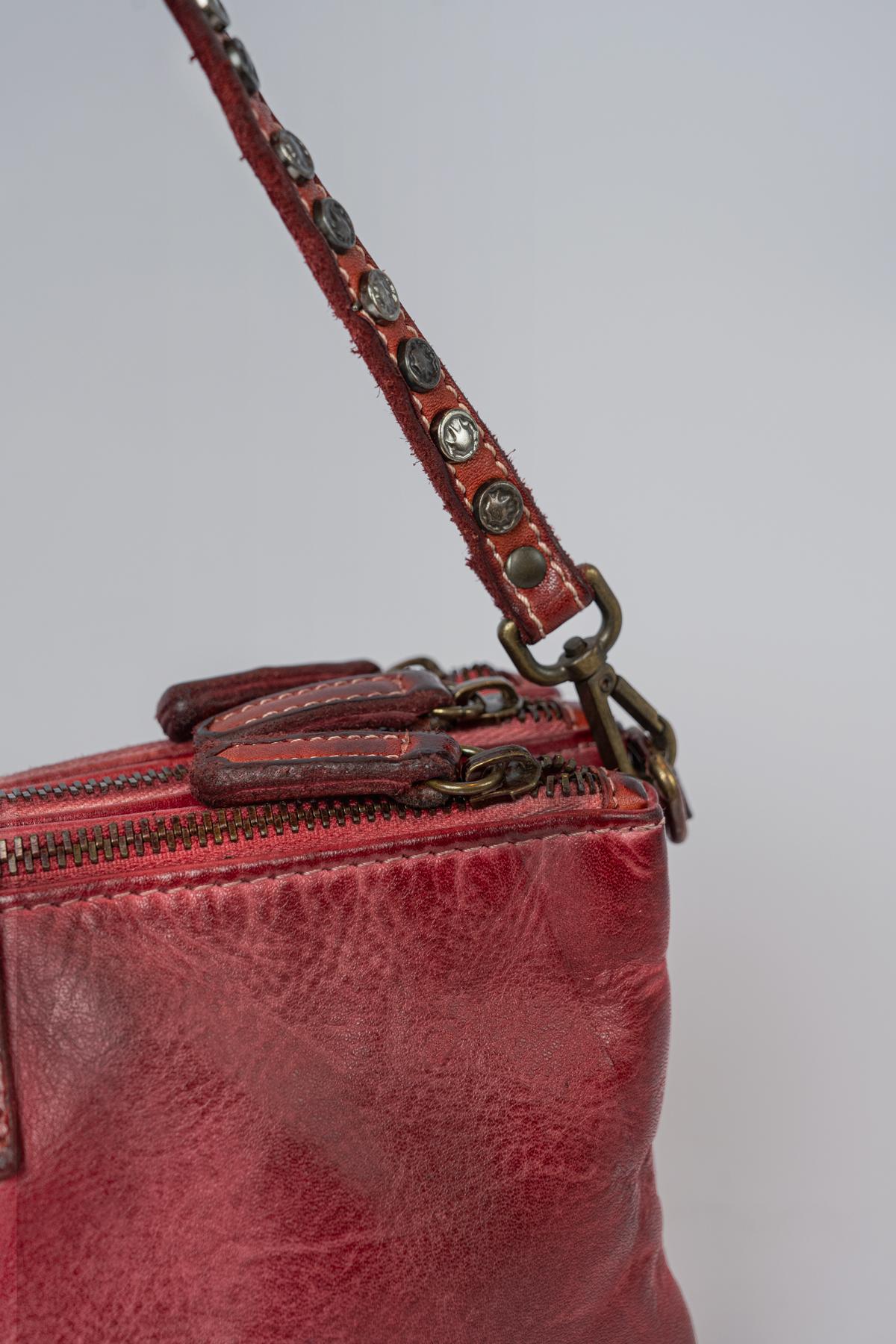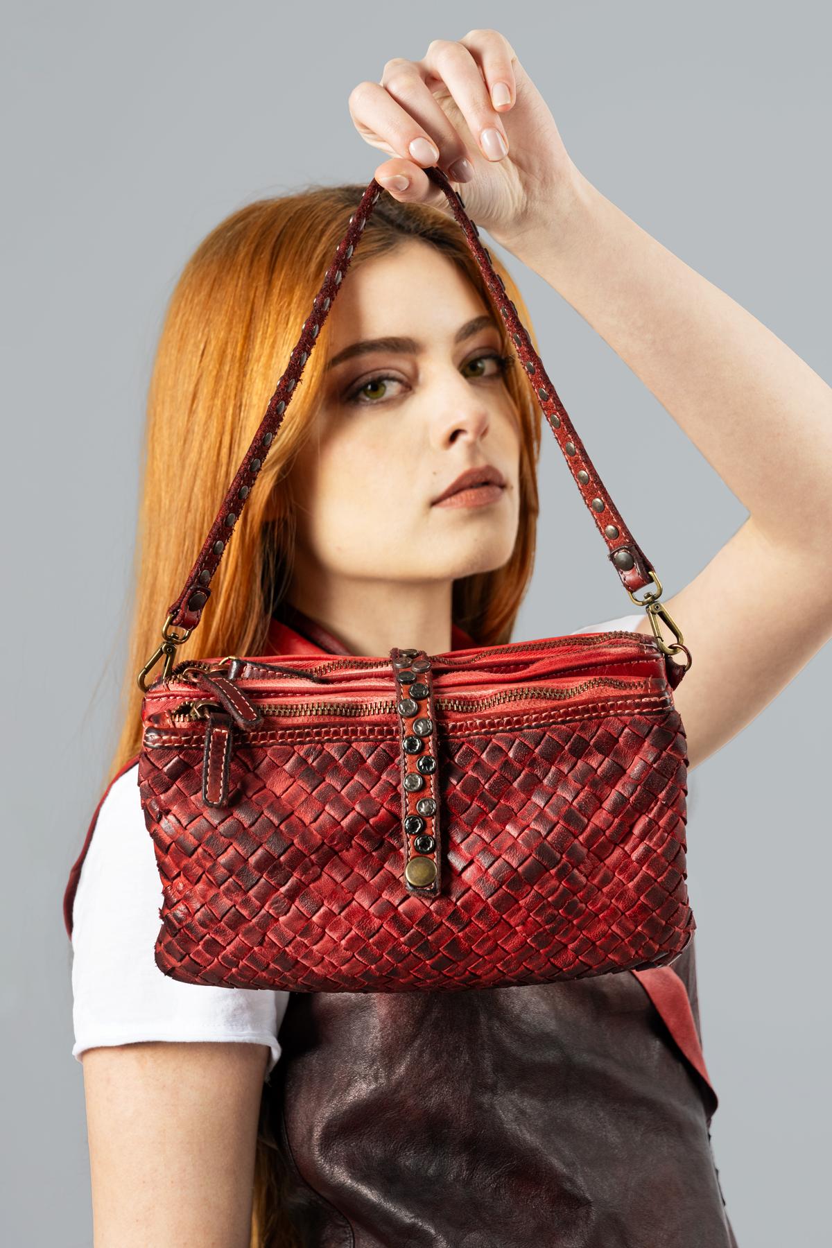 Hand-woven leather shoulder bag. Three compartments with zip, strap and studded handle. Adjustable shoulder strap.This item, being a handmade product, may have variations ...