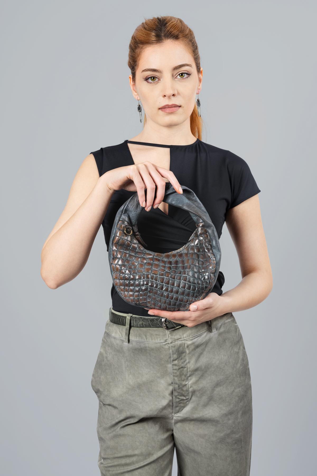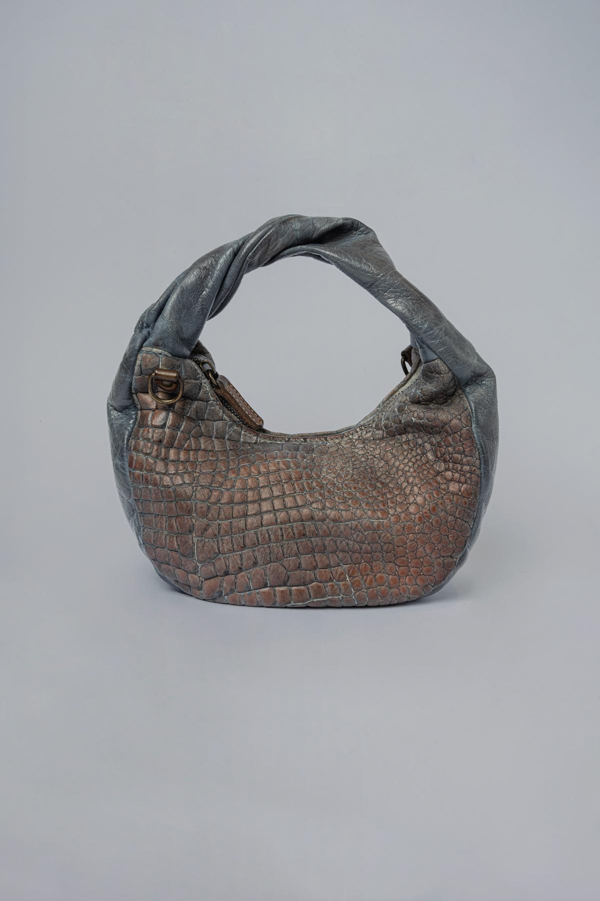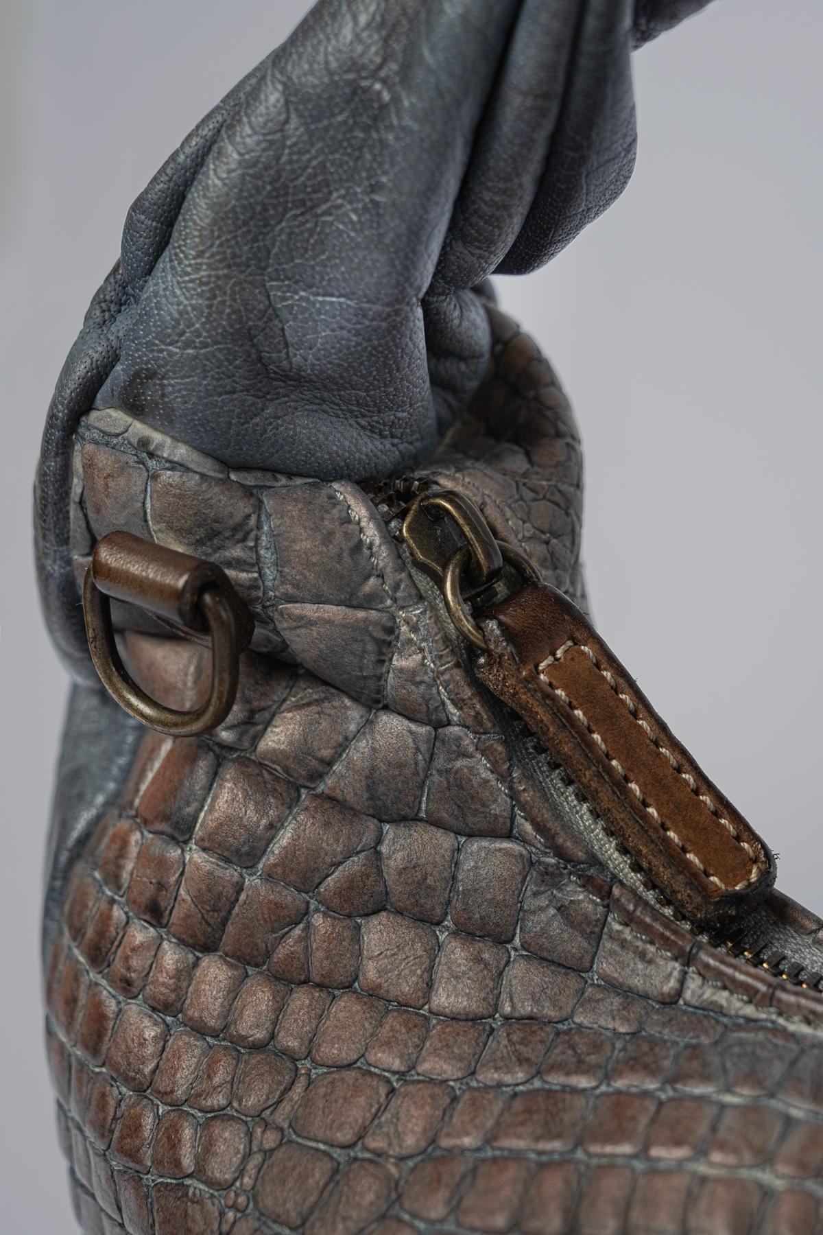 Soft leather shoulder bag with crocodile texture. Zip closure. Removable shoulder strap.Sheep LeatherLength: 8,6inch (22cm)Height: 5,5inch (14cm)Width: 3,9inch (8cm) ...