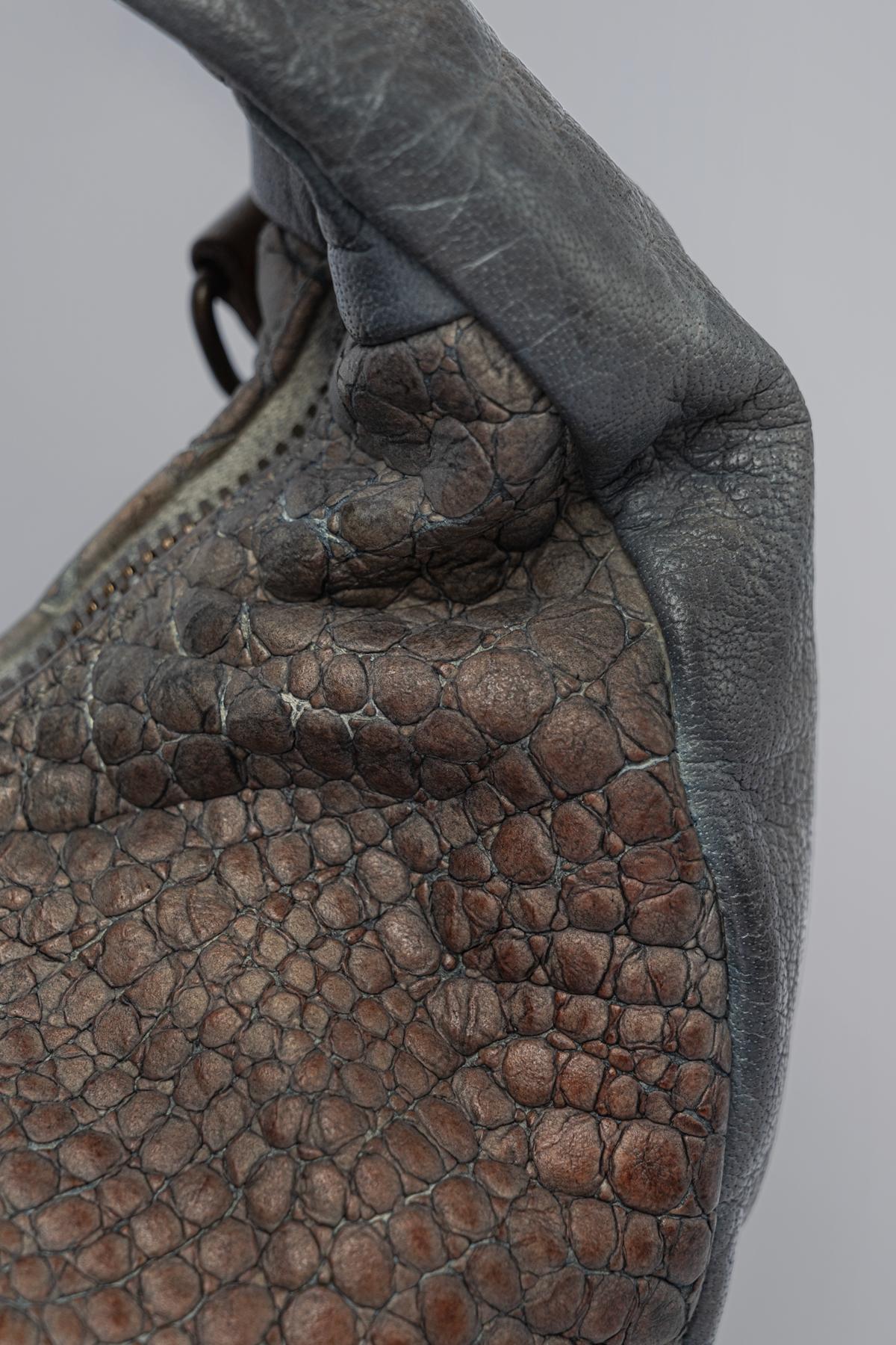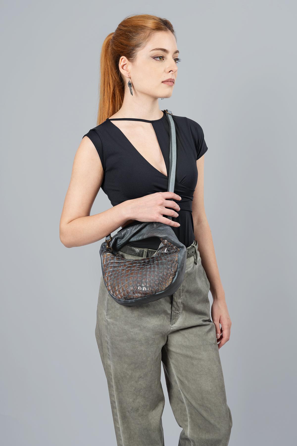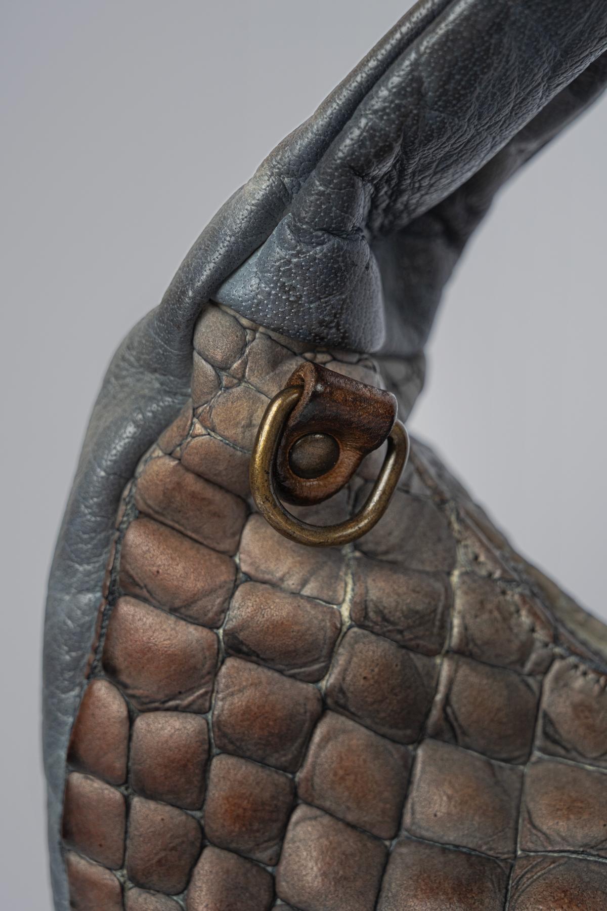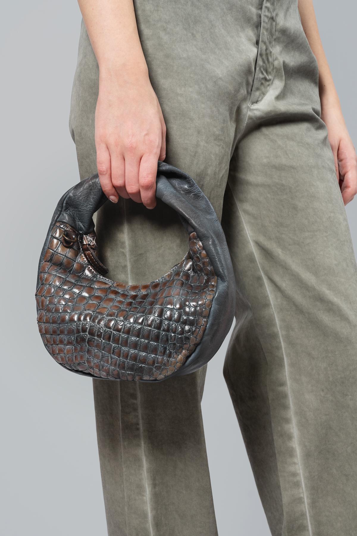 Soft leather shoulder bag with crocodile texture. Zip closure. Removable shoulder strap.Sheep LeatherLength: 8,6inch (22cm)Height: 5,5inch (14cm)Width: 3,9inch (8cm) ...