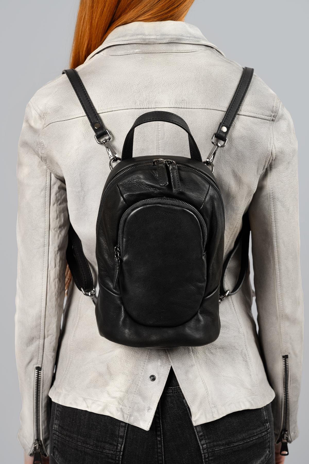 Genuine leather backpack with a double compartment and practical zip fastening. Adjustable and removable straps.Calf LeatherLength: 8.2inch (21cm)Height: 10.6inch (27cm)W ...