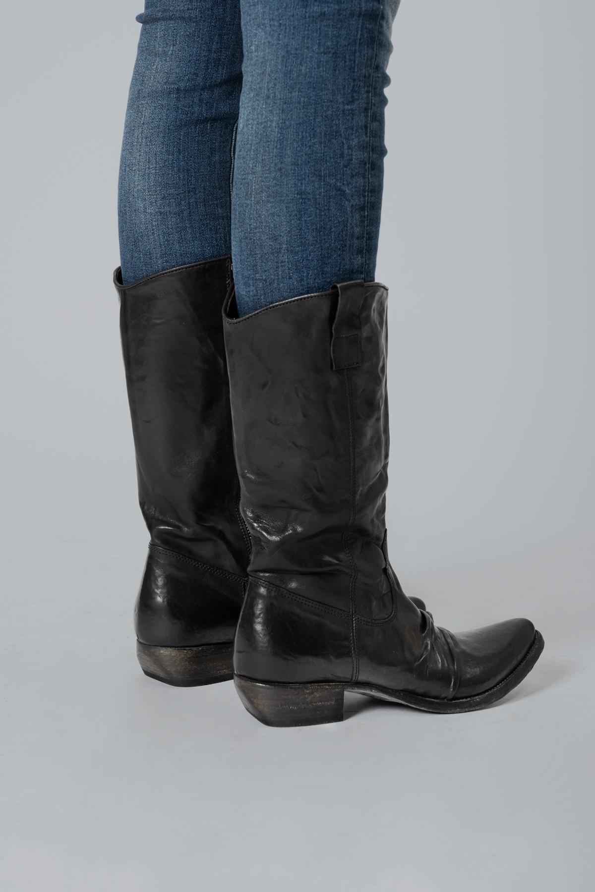 Texan leather boots. Side zipper closure. Handmade front pleats