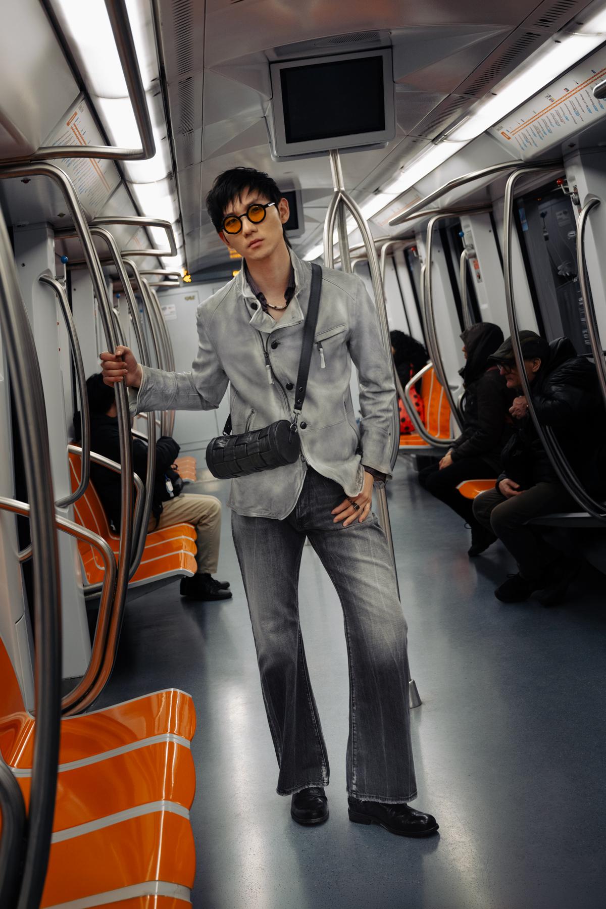 Shoulder bag with a cylindrical design, made of genuine hand-woven leather. Embellished with studs along the zip fastening. Removable and adjustable shoulder strap.