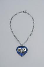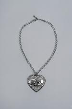 Necklace with heart-shaped pendant, embellished with two finely sculpted skulls and sparkling stones. Clasp with lobster clasp.Silver and Swarovski ...